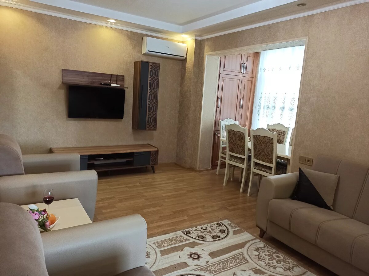 Apartamento luminoso y acogedor de 3 habitaciones (100 m²) en el centro de Bakú, en el primer piso. Cerca de la Ciudad Vieja, parques, cafés y tiendas. Patio verde con árboles y parque infantil. Incluye dormitorio, habitación para niños, sala de estar, cocina con agua filtrada, wifi, aire acondicionado y lavadora. Llegada autónoma sin contacto. Perfecto para familias y estancias largas. Limpio, cómodo y totalmente equipado.