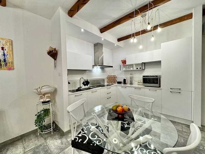 Relájate con la familia en este lugar moderno y luminoso. La hermosa vista al mar desde la terraza hará que tu estadía y tus bebidas al atardecer sean únicos. A unos 500 m de la playa y a 300 m de tiendas y restaurantes. Dormitorio principal,dormitorio,terraza, sala de estar, baño y cocina. Qué encontrarás Lavadora gratuita Lavaplatos Elementos básicos Toallas, sábanas, jabón y papel higiénico Aire acondicionado y aire acondicionado Sistema de aire acondicionado Cocina y comedor Estacionamiento