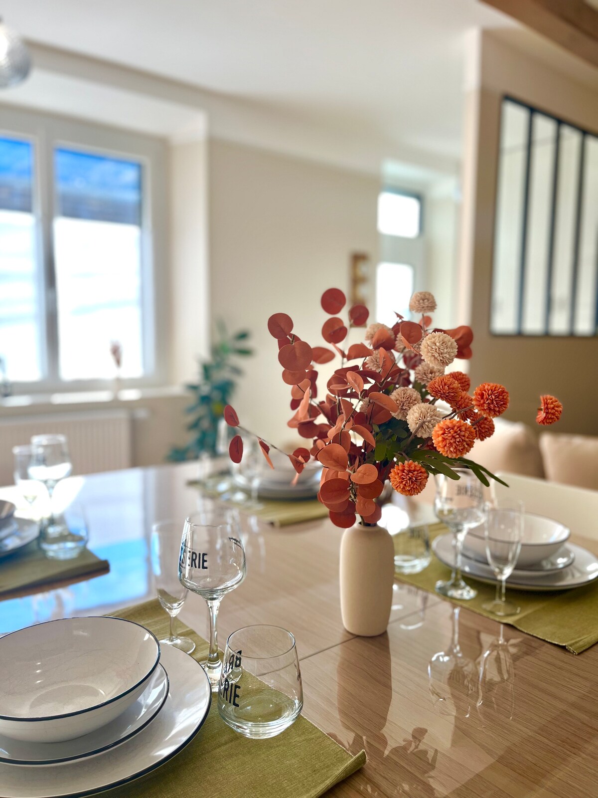 Casa de montaña renovada con todas las comodidades necesarias incluyendo sábanas y toallas para familias y curistas . Orientada al sur, por lo que es muy luminoso, encontrará todas las instalaciones necesarias para pasar una excelente estancia. 2 dormitorios con cama doble y cada uno su baño + un espacio privado con cama doble en el ático de la casa, así como una gran cabaña para los pequeños. La casa tiene un jardín soleado, así como una terraza y un garaje