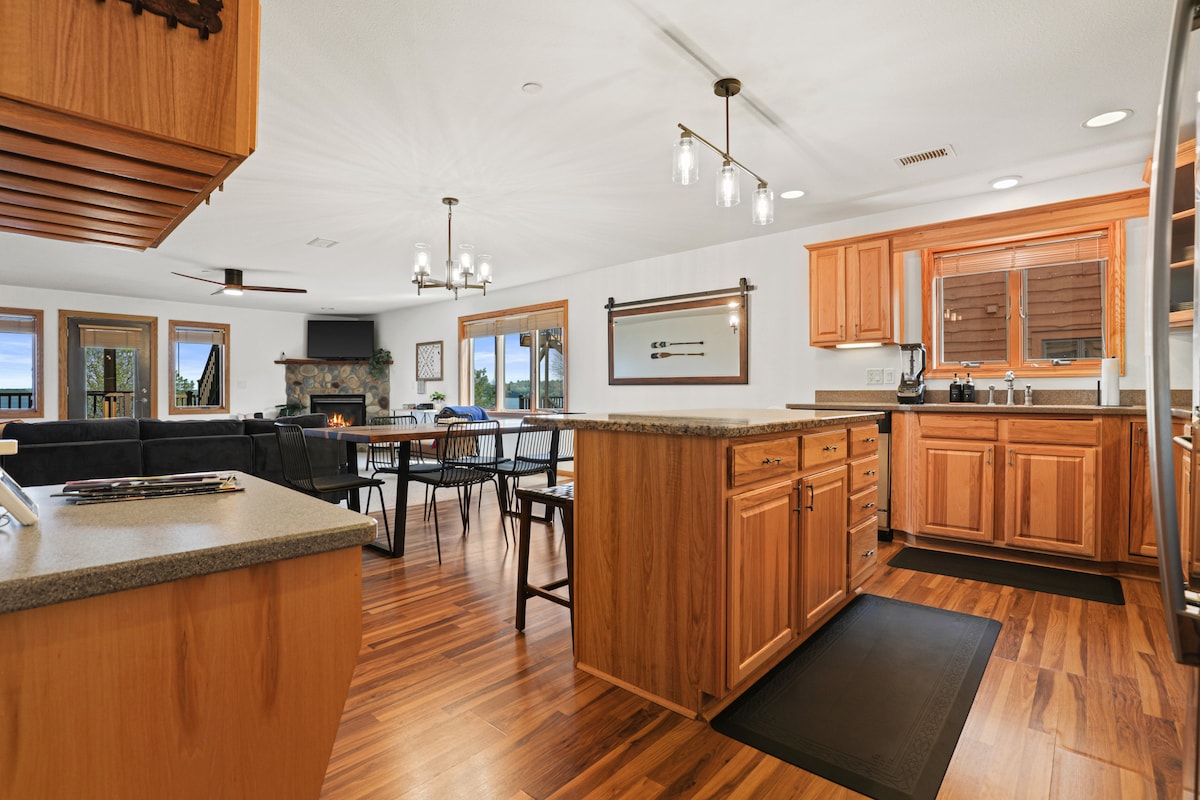 Disfruta de la vida junto al lago en nuestro lujoso apartamento frente al lago. Despiértate con un café por la mañana en el balcón con impresionantes vistas al lago Delton. Nuestro espacioso apartamento de 2 dormitorios y 2 baños cuenta con una hermosa suite principal con cama tamaño king, baño privado completo con bañera de hidromasaje y ducha a ras de suelo con 3 cabezales de ducha direccionales. Es la escapada perfecta para aquellos que quieren sentirse como si estuvieran en un mundo aparte, pero también a pocos minutos de toda la diversión y emoción de los Dells.