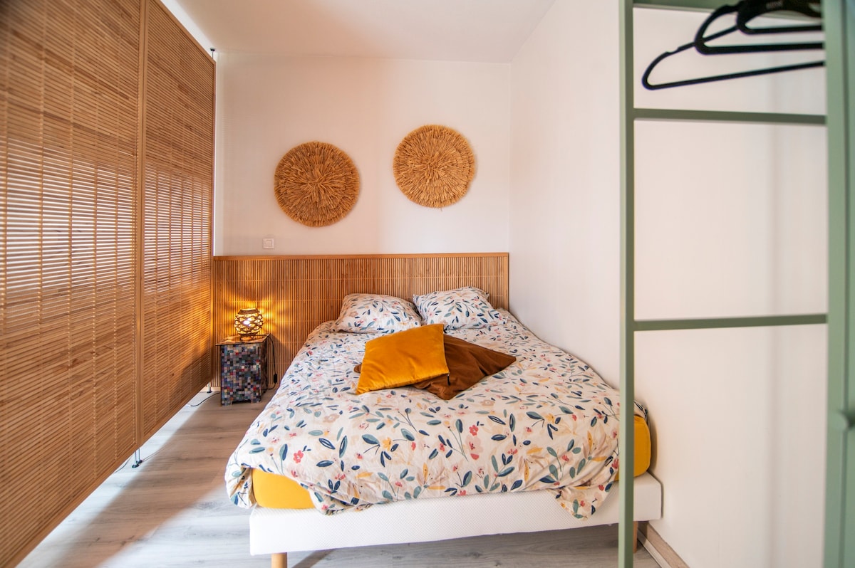 Este apartamento está idealmente situado entre el centro de la ciudad y la zona de negocios de Mélou, se encuentra en la planta baja, tiene una terraza, un jardín y aire acondicionado. Se proporcionan ropa de cama y toallas de baño, hay conexión wifi disponible. Se puede aparcar de forma gratuita en las calles adyacentes a menos de 2 minutos a pie.