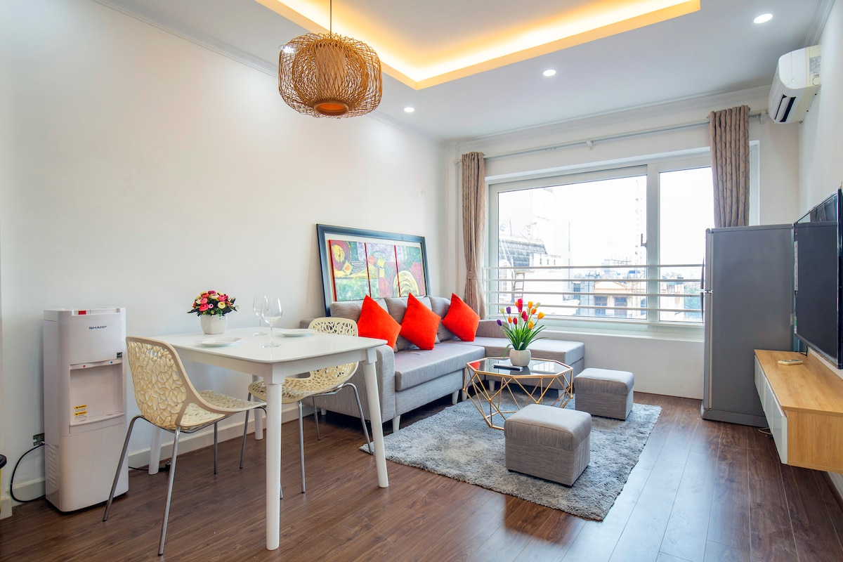 Te damos la bienvenida al edificio Sumitomo2 Apartment - Dao Tan. El departamento está diseñado con 1 dormitorio separado, 55 m2 de ancho, 3 lados abiertos. El departamento está recién diseñado en un estilo moderno y totalmente amueblado: como TV inteligente, aire acondicionado de 2 vías, bañera, inodoro automático, calentador de agua, ropa de cama, toallas, utensilios de cocina. ...... los huéspedes solo traen maletas para quedarse. Siempre mantenemos servicios diarios de limpieza y lavandería para los clientes, Internet de alta velocidad, televisión japonesa, agua potable...
