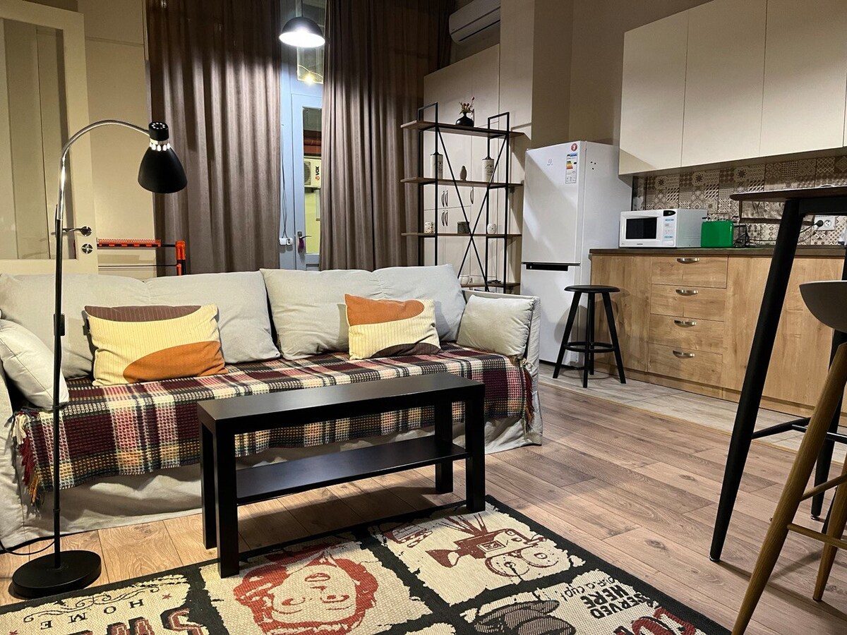 Relax in this spacious, fully furnished 1BR apartment in a beautiful, walkable area of Tbilisi. Enjoy a peaceful garden view, self check-in, fast Wi-Fi, and all essentials for a comfortable stay — great for couples, families, or small groups (sleeps 4).