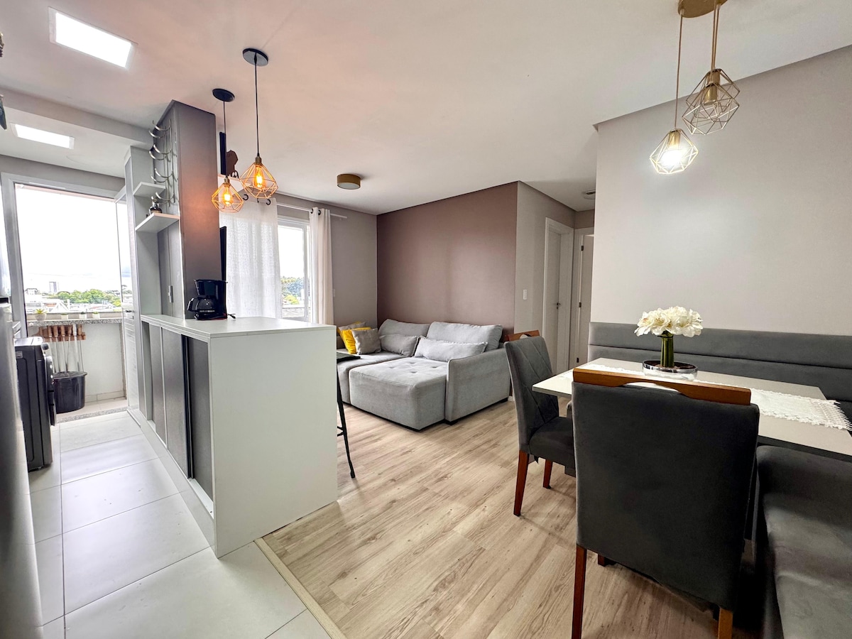 Apartamento bien ubicado dentro de la UCS (Universidad de Caxias do Sul), en la que hay un Stock Center, varias hamburguesas cerca, un barrio con toda la estructura disponible. Área interna de 40 m², muebles a medida, un encanto, con esta maravillosa vista. Último piso y con suelo de goma para la comodidad del sonido, evitando el ruido al apartamento de abajo. Dos ascensores, espacio de trabajo/biblioteca, lavandería, quiosco con barbacoa y conserjería las 24 horas.