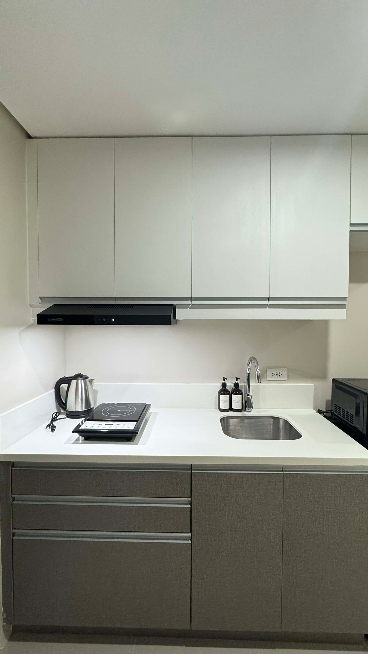 Un estudio luminoso de inspiración mediterránea en Baseline Prestige, en la zona residencial de Cebú, diseñado para disfrutar de la ciudad y de escapadas a la isla. Despiértate con suaves tonos costeros, trabaja en fibra rápida y luego camina a cafés, centros comerciales y hospitales a pocos minutos de distancia. Comodidad de hotel con detalles prácticos: agua potable filtrada, ducha caliente y cocina americana totalmente equipada.