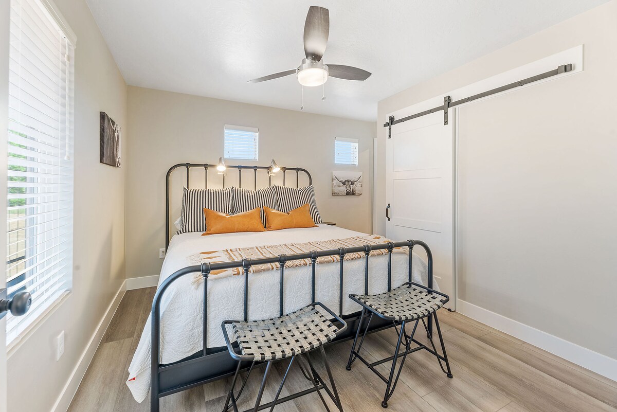 Esta casa adosada con tres dormitorios, tres baños, cocina completamente equipada y patio, se encuentra en la puerta de entrada al Parque Nacional Zion, el Parque Nacional Bryce Canyon, el Monumento Nacional Cedar Breaks, Brian Head y mucho más. Nuestra casa urbana es el lugar perfecto para hospedarse con su familia o un grupo cuando visite cualquiera de estas increíbles vistas al aire libre. Se encuentra a cinco minutos en coche de la histórica calle principal, el campus de SUU y los teatros del Festival de Shakespeare.