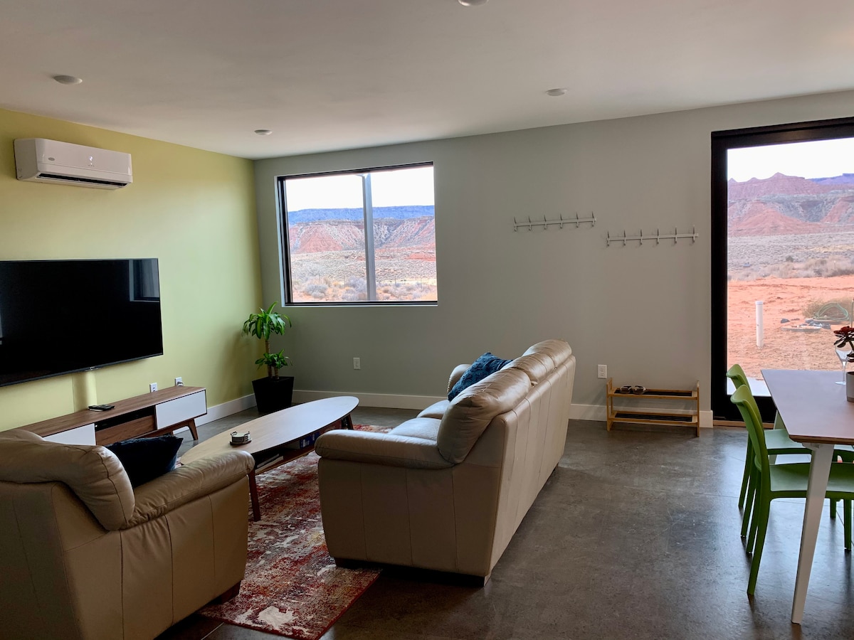 Casita privada con entrada privada. ¡La mejor ubicación cerca del parque nacional Zion y todas las comodidades! A 23 millas de Zion y a 1 milla de una tienda de comestibles, cine y restaurantes. Disfruta de eventos locales, a 2 manzanas del centro de la ciudad. Privacidad completa, en una zona tranquila de la ciudad. ¡Nueva construcción, limpia y bonita! Entrada con teclado. Lavadora y secadora. Disfruta de ciclismo de montaña, senderismo, paisajes increíbles, paseos a caballo, paseos en jeep, dunas de arena para todoterreno y motos, paseos en barco, salto de acantilados.