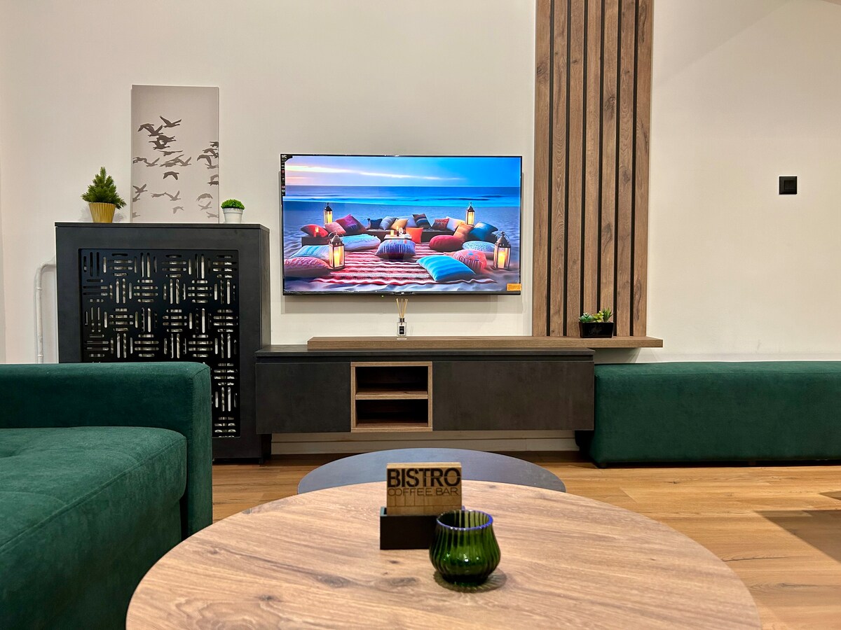 ¡Bienvenido a tu hogar perfecto lejos de casa! Este encantador apartamento de un dormitorio ofrece un acogedor refugio con todas las comodidades que necesitas para disfrutar de una estancia relajante. Ubicado en uno de los barrios más antiguos de Skopje, el espacio cuenta con una amplia sala de estar y dormitorio con comodidades modernas y una cocina totalmente equipada. Ya sea que estés aquí por negocios o placer, disfruta de un entorno tranquilo y elegante a solo 10 minutos a pie del Bazar Viejo y a 5 minutos a pie del centro comercial más grande: ¡East Gate!