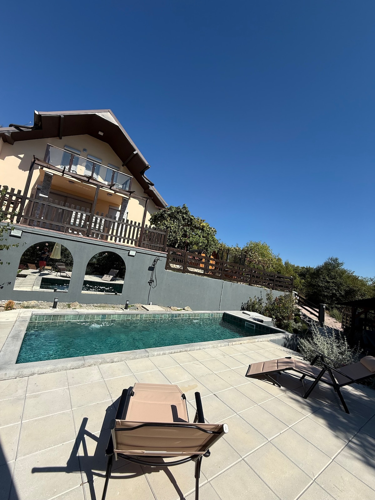 Villa Natura Bardovci - Piscina, jardín y chimenea