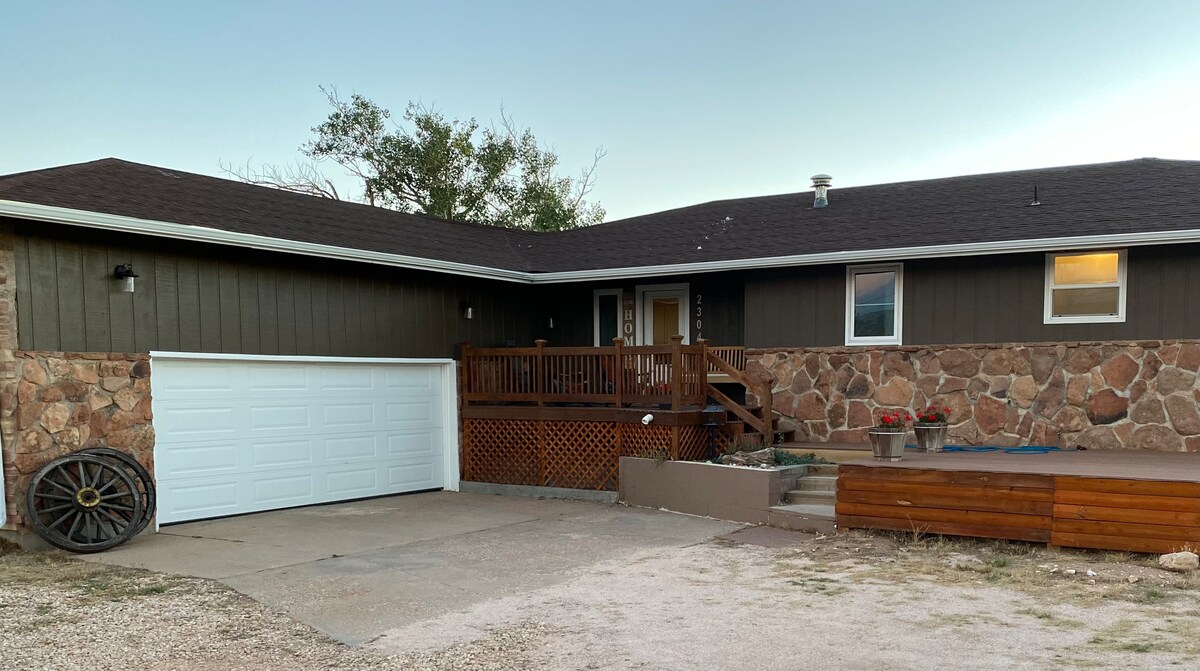 Casa aislada en 35 acres contiguos al Bosque Nacional Medicine Bow. A 10 minutos de la zona de esquí de Laramie y Tie City, a 15 minutos del parque estatal Curt Gowdy en el embalse de Granite Springs y a 35 minutos de Cheyenne. Hermosos paisajes y abundancia de ciervos y alces. Patio trasero vallado y se admiten mascotas. Cama tamaño queen en el dormitorio principal con cama doble en la planta baja en una zona semiprivada. Dormitorio adicional con cama tamaño queen y baño privado y apartamento estudio disponible previa solicitud por un cargo adicional. Sin servicio de telefonía celular.