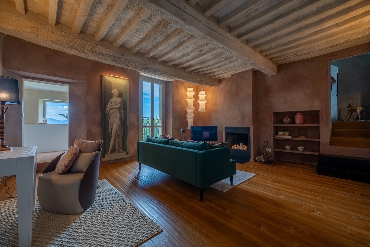 In 2023 my son Guglielmo and I decided to restore the old oratory of a church from the 1600s by creating a two floor apartment: upstairs we have 2 bedrooms equipped with AC and 2 en-suite bathrooms with shower; downstairs a spacious living room with stereo Available a table outside with great view and a nice garden 50 mt away where to have a private wine tasting or barbecue for all the guests of our 4 apartments, after 7pm if booked large in advance Large free parking area 100 mt away