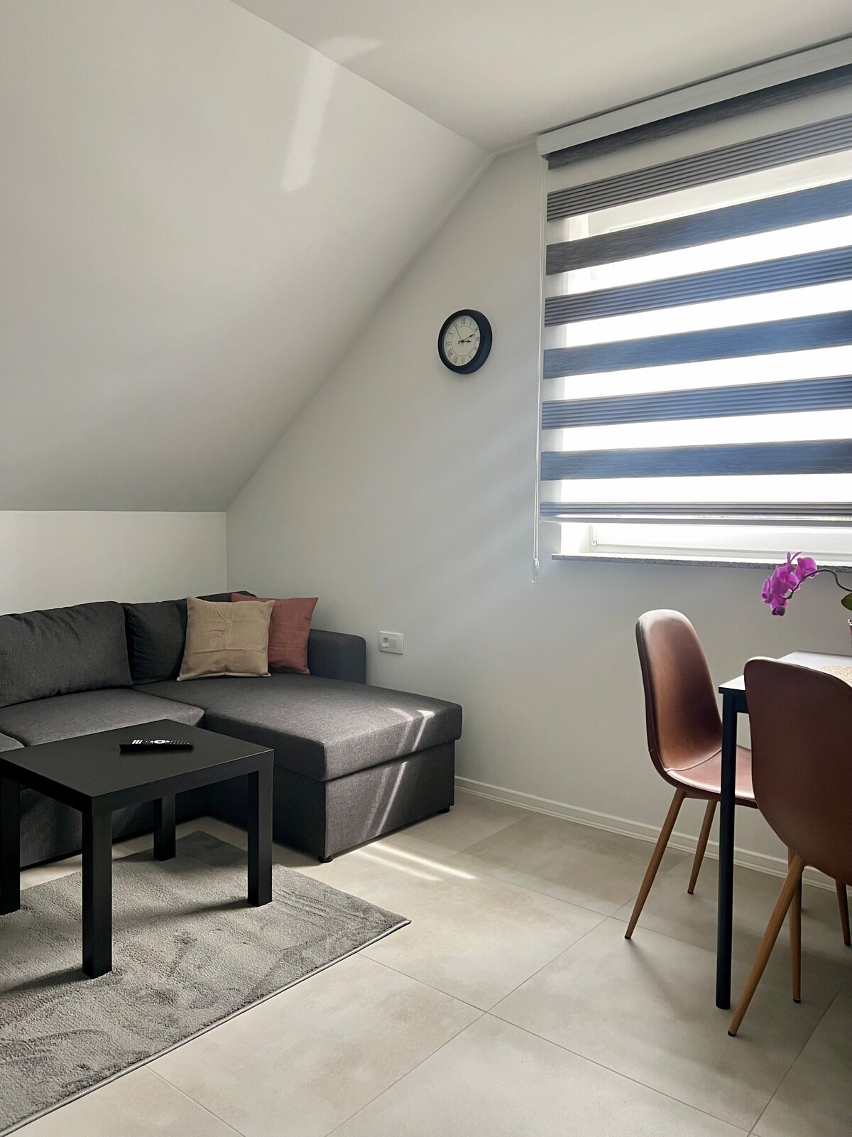 Relájate en este tranquilo y encantador apartamento, situado en el tranquilo pueblo de Spodnje Bitnje, en la impresionante región eslovena de Gorenjska. El apartamento es completamente nuevo, con muebles modernos y comodidades diseñadas para que te sientas como en casa. Ideal para parejas, familias o grupos de 4. Ubicación práctica: a 12 km del aeropuerto Jože Pučnik (a solo 14 minutos en coche), a 24 km de Liubliana (a 30 minutos en coche) y a 32 km del lago Bled (a 36 minutos en coche).