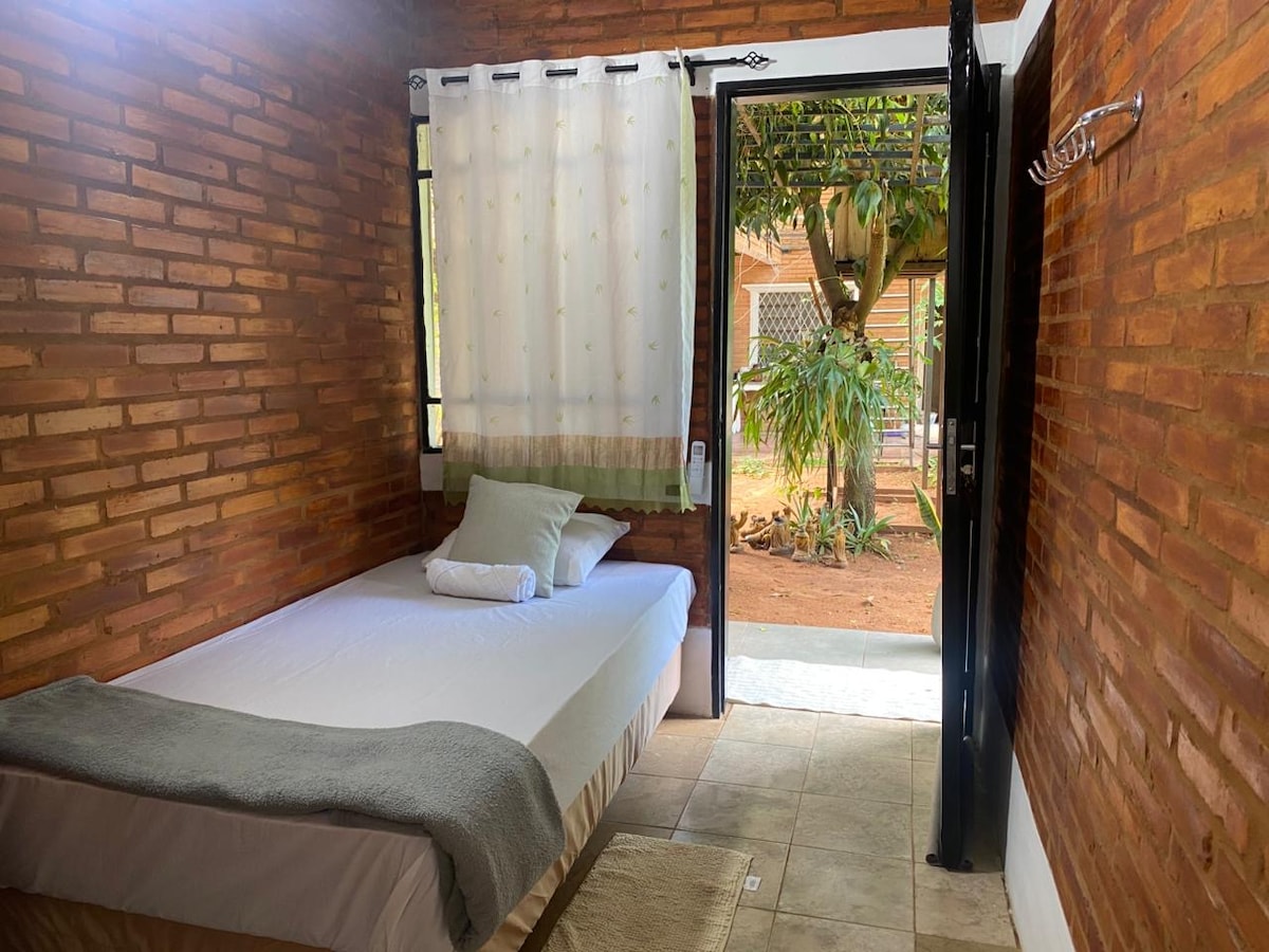 Cabañita con dos habitaciones, un baño, cocina equipada y sala. Afuera una pequeña galería y un jardín con una piscina/jacuzzi privada y una hermosa vista al lago Ypacarai y al atardecer. Se encuentra en una propiedad con otras cabañitas más pequeñas independientes y un área común con patio, terrazas, quincho y una piscina más grande con agua salada. Un lugar para relajarse y conectarse con la naturaleza: Tu casa de campo cerca de la ciudad y con todas las comodidades.