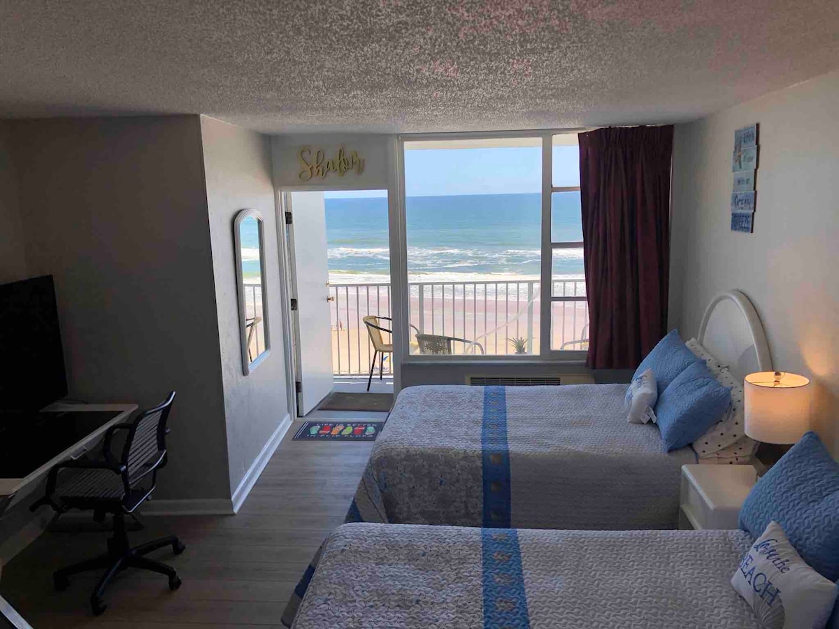 🔥 Stay 6 nights, get 1 FREE! 🛠️ Secure garage parking for your bike for stays 🌊 Steps from sand, stunning ocean views 🛏️ Fully stocked condo – relax in comfort after a day on the road 🚶♂️ Close to Main Street, restaurants, and rally events. Kitchenette, frig, laundry, all updated on 6th floor on the beach! Here to ride, relax, or both – Ocean Shalom gives you the best of both worlds: tranquility by the waves and easy access to all the Biketoberfest excitement. 📅 Book now