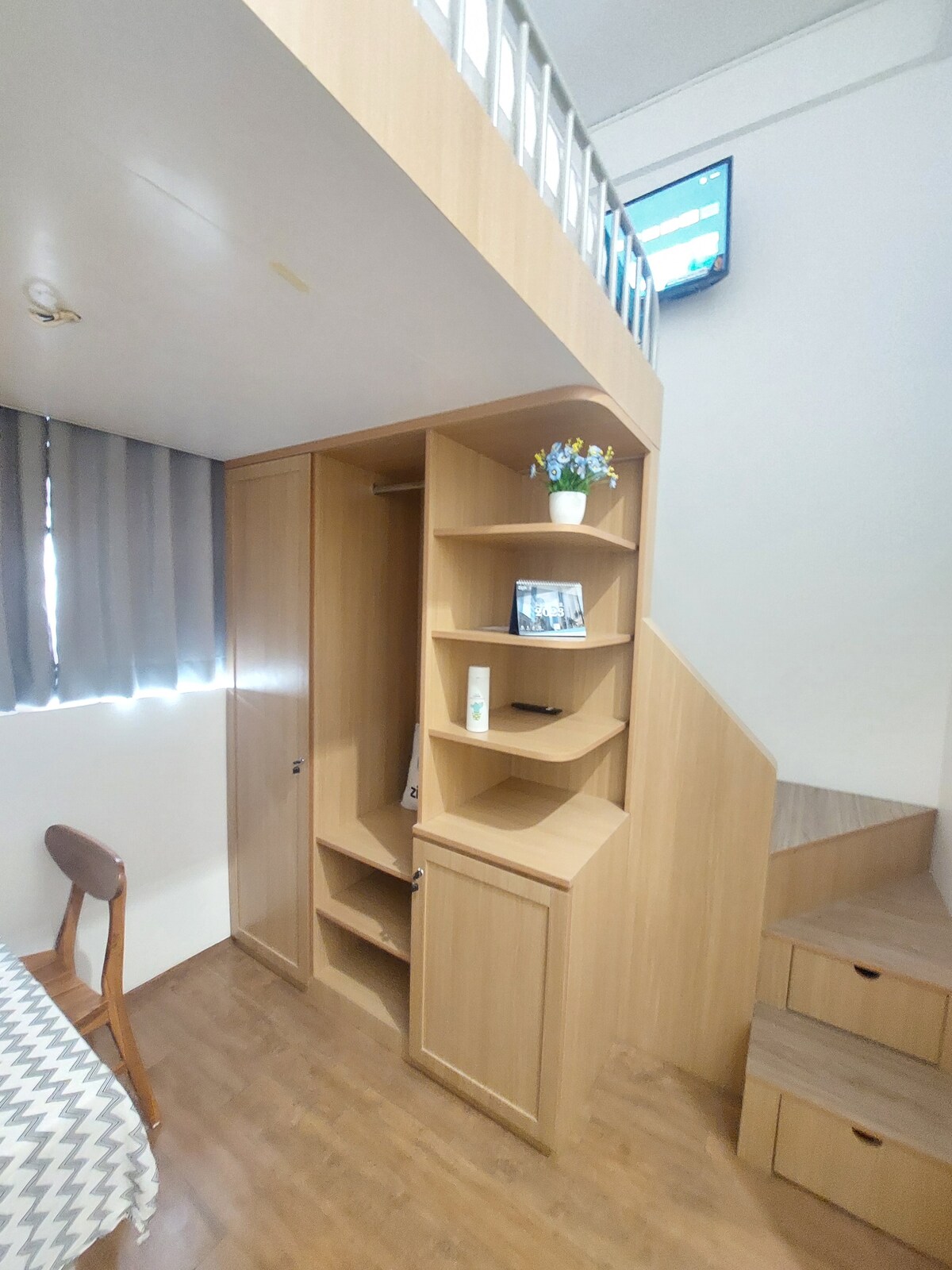 Alójate en el corazón de la multitud en este lugar único. El tipo superior tiene una ventana de salida con vistas al centro de la ciudad con TV inteligente, WiFi, aire acondicionado,baño privado y agua caliente. Hay una cocina comunitaria, agua potable, nevera común, cerca de muchas cocinas en la presa Downstream.