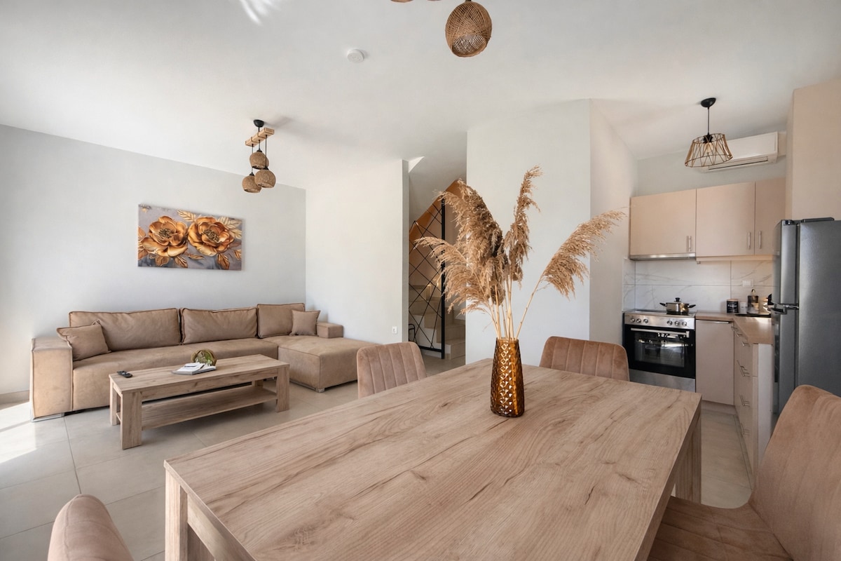 Situado en el tradicional pueblo de Pefkohori, en la primera «parada» de la famosa península de Halkidiki, Valery Apartments es una propiedad de nueva construcción dedicada a aquellos que se preocupan por la privacidad y la tranquilidad, pero al mismo tiempo se esfuerzan por estar en el corazón del estilo de vida bullicioso del centro vacacional. El compromiso con la comodidad es otra ventaja de esta acogedora posada, por eso cada uno de nuestros apartamentos de dos niveles cuenta con una gama completa de comodidades modernas, llamadas a garantizar que tengas unas vacaciones perfectas e inolvidables en Grecia.