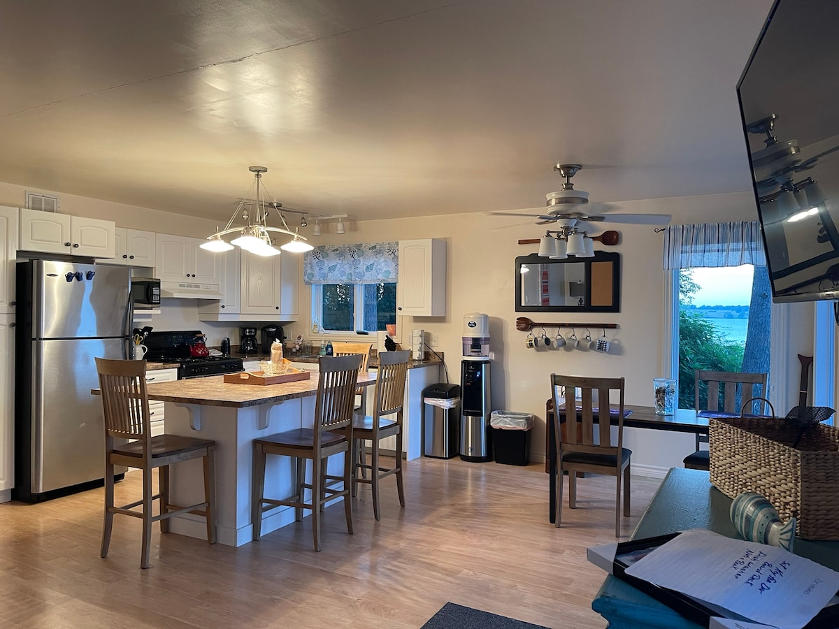 Licencia STA n.º ST-2021-0105 R3 2 dormitorios/4 adultos Relájate y disfruta de las impresionantes vistas de la bahía de Quinte desde este porche delantero cubierto. Contempla las hermosas puestas de sol y el agua para disfrutar nadando, relajándote en el muelle, pescando y mucho más. Un pase de banco de arena incluido con tu alquiler, sin cargo adicional. Máx. 1 carga de coche. Es responsabilidad de los huéspedes hacer su propia reserva para la playa, imprimir la confirmación y llevarla consigo.