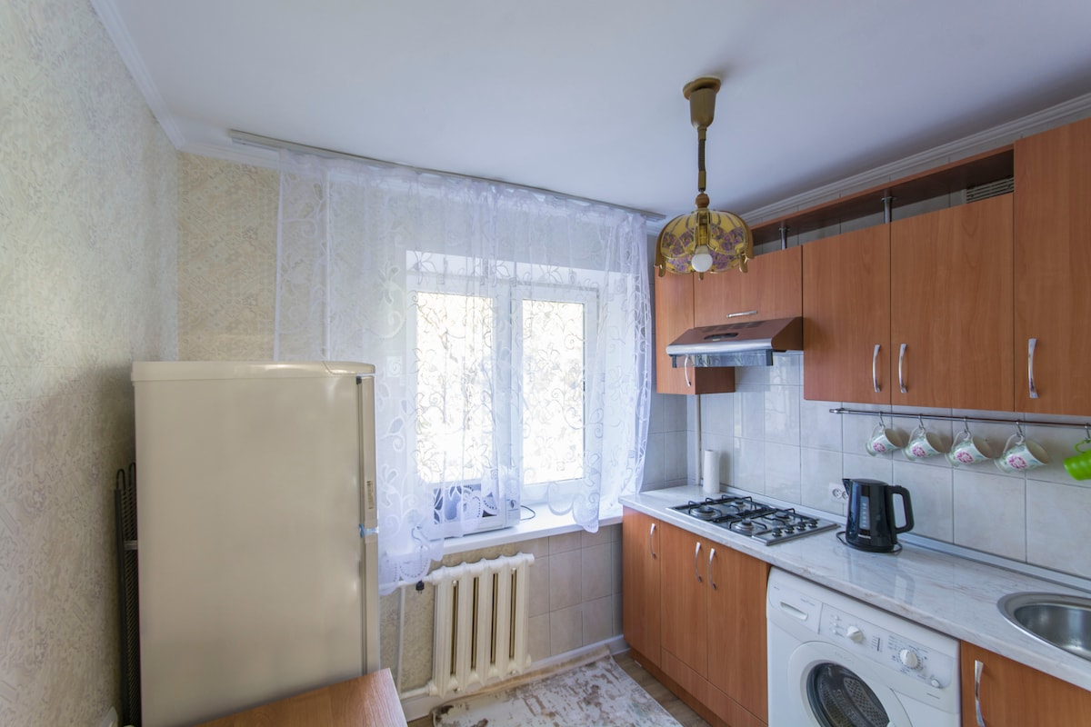 Imagina entrar en un apartamento en Airbnb ubicado en un antiguo edificio de la época de Stalin, donde el estilo neoclásico se adopta con elegancia. El exterior del edificio cuenta con la grandeza de la era soviética, con una arquitectura imponente caracterizada por una construcción robusta y líneas simétricas. Al entrar en el apartamento, te recibe una entrada amarilla con molduras neoclásicas que conduce a la cocina y al salón con impresionantes lámparas de araña que cuelgan de techos altos. No hay ascensor. 🛗