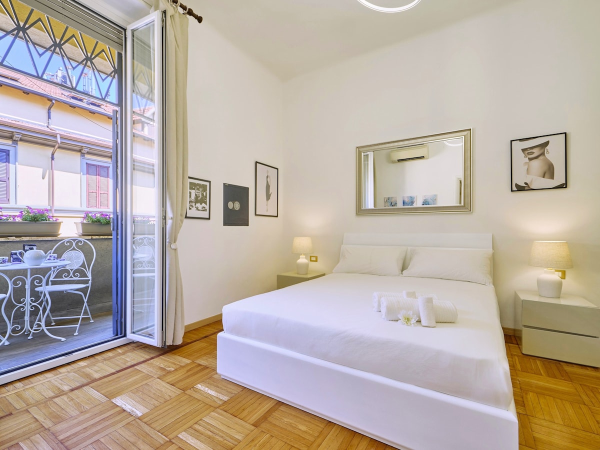 En la zona de la moda y el diseño, en el centro de Milán, a pocos pasos del famoso BAR BASSO, punto de encuentro de diseñadores y estilistas, el apartamento está completamente reformado, todo en parqué francés, y consta de sala de estar, dormitorio, baño y dos maravillosos balcones de estilo liberty. El apartamento está cerca del metro Lima-Loreto y de otros medios de transporte. Además, la ubicación está llena de restaurantes de carne/pescado, bares muy conocidos de la vida milanesa, pizzerías, farmacias, mercados y tiendas.