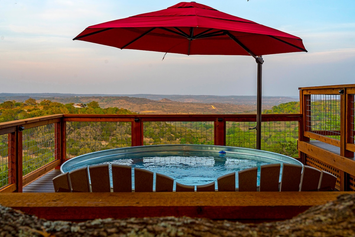 ¡Escápate del ordinario! ¡Fredericksburg BNB con vistas increíbles en nuestra casa en la cima de una colina en 57 ac es tuyo para experimentar todo para ti! Romántico y aislado con vistas impresionantes en todas las direcciones. Perfecto para una «escapada de todo». A poca distancia en auto de las tiendas y bodegas de Main Street. Este es un hogar lejos del hogar con internet Starlink. Sumérgete en nuestra lujosa bañera de hidromasaje, refréscate en la piscina de vaqueros, en la zona de cielo oscuro ideal para contemplar las estrellas, hacer senderismo y explorar la propiedad o simplemente crear recuerdos alrededor de la fogata.