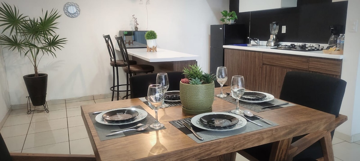 Relájate en esta escapada única y tranquila. Vienes de paseo o de trabajo?? esta opción es para ti. Loft con todas las comodidades para pasar una estancia increíble. En una zona exclusiva donde tienes las mejores vialidades y acceso a cualquier punto de la ciudad. El departamento esta totalmente equipado, cuenta con una cama matrimonial y un sofa cama individual, un escritorio de trabajo, wifi, cocina totalmente equipada, áreas de esparcimiento y estacionamiento exclusivo para un automóvil.