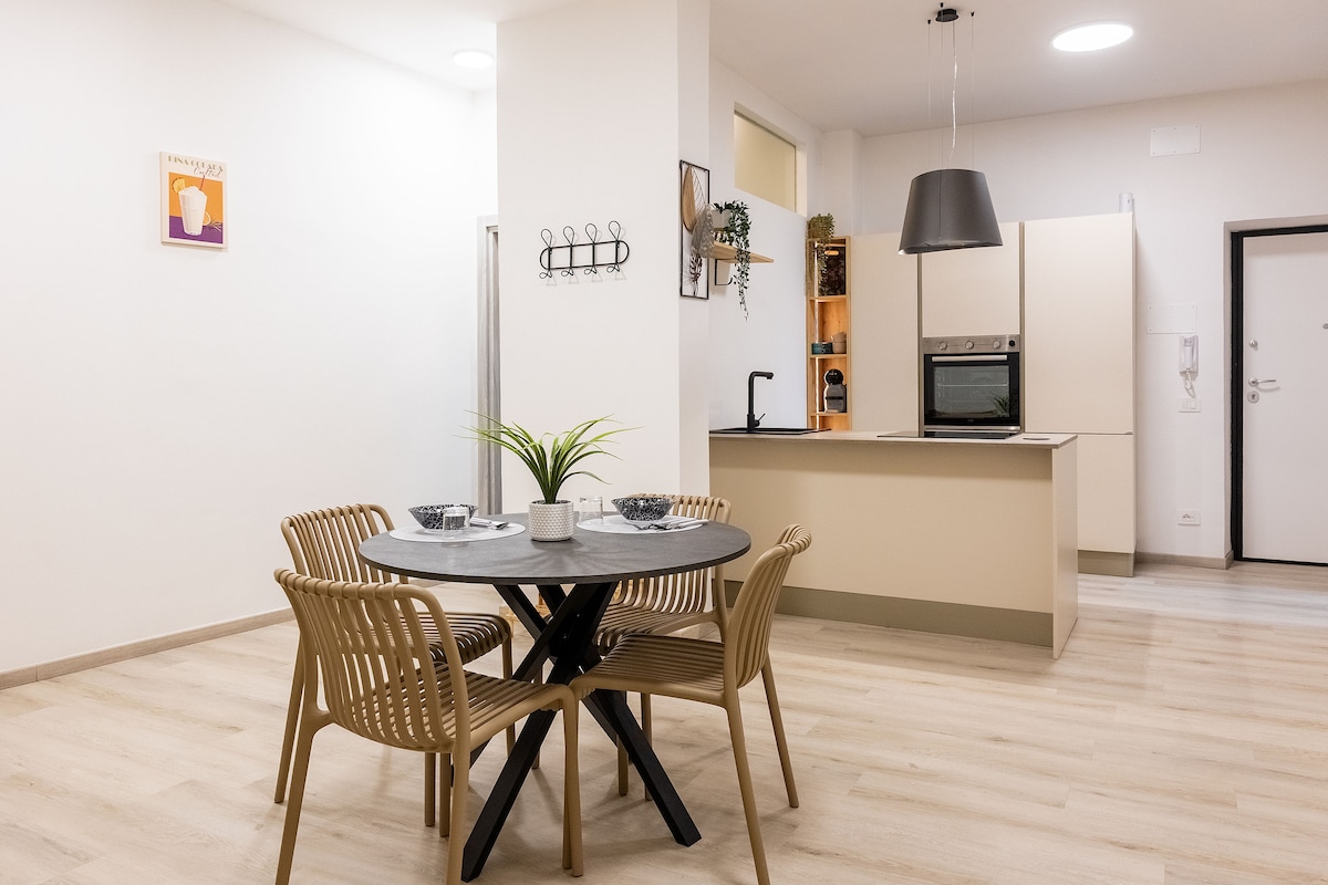 «Hermoso apartamento con estilo y terraza a solo 550 metros de la estación de tren Duomo (tren local). El apartamento se encuentra en un edificio tranquilo, fácil de llegar al centro de la ciudad y a todo el transporte (estación central de Salerno a 1,7 km). Tiendas de comestibles, bares y aparcamiento de pago justo al final de la calle. Salerno es un gran punto de partida para excursiones de un día a la costa de Amalfi. No dudes en enviarme un mensaje para cualquier otra información.