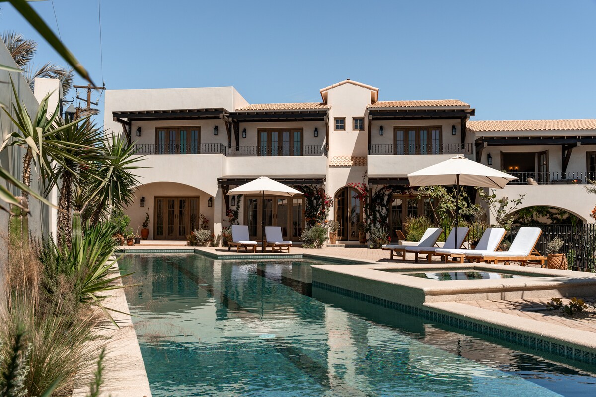 Esta impresionante casa de playa en Cerritos cuenta con amplias terrazas, fogatas, zonas de yoga y una piscina climatizada de 10 pies de profundidad con una plataforma para tomar el sol. Relájate en el jacuzzi de la azotea, en la piscina de inmersión fría o en la sauna, y disfruta de cocinas y comedores interiores y exteriores, completos con hamacas. A pocos pasos de la playa, tiendas de comestibles, bares y restaurantes, puedes explorar la vibrante zona o relajarte en tu santuario privado en el desierto. Disfruta de la comodidad y la elegancia en esta serena escapada a Baja California, ¡donde irse es opcional!