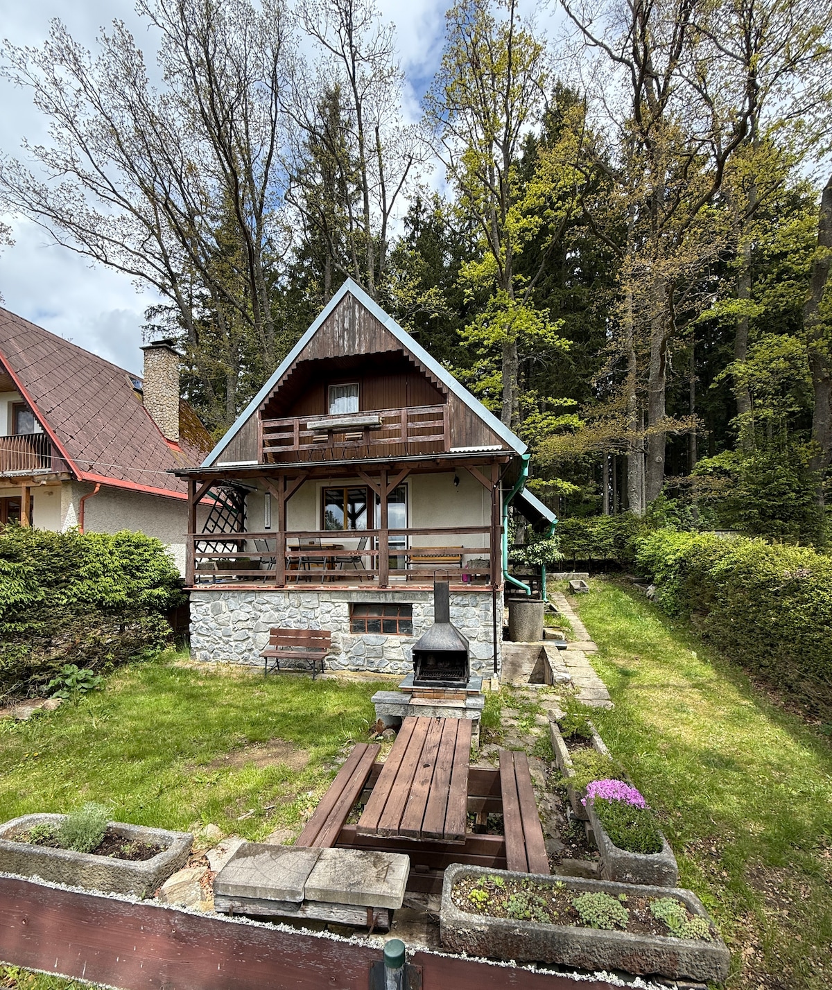 Ven a experimentar momentos inolvidables en el tranquilo oasis del sur de Bohemia, justo en el corazón de la zona paisajística protegida Bosque Blansky con el majestuoso monte Klet en el horizonte. Nuestro acogedor lugar es el punto de partida perfecto para tu aventura: descubre pintorescos senderos para bicicletas y rutas de senderismo que te llevarán a lugares inolvidables en el sur de Bohemia. Por la noche, disfrute de momentos tranquilos junto al fuego y admire el cielo estrellado que se extiende sobre nosotros con increíbles vistas. Actualmente: la bañera de hidromasaje está preparada para el invierno, en funcionamiento de nuevo en la temporada 2026