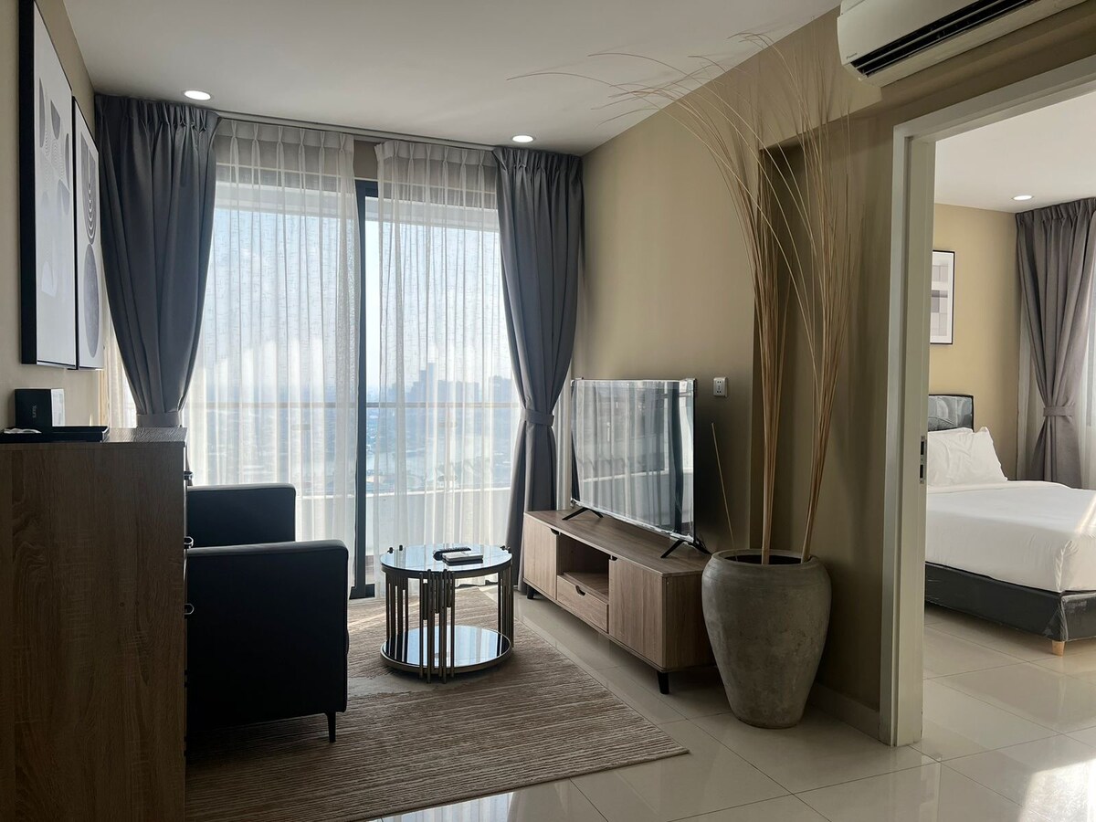 ¡Bienvenido a tu nuevo santuario de estudio en el vibrante barrio de Beoung Trabek (cerca del mercado ruso)! Esta joya completamente amueblada en la planta 26 ofrece un espacio moderno y cómodo. Entra en tu espaciosa morada de 45 metros cuadrados, donde una sala de estar abierta te da la bienvenida con calidez y estilo. Agua potable gratis. Wifi gratis. Televisión deportiva DAZN (NFL y más). Tabla de dardos. Piscina en la azotea (un piso arriba) y gimnasio. Vista del asesino. La cama queen mide 150 cm por 200 cm. NO FUMAR. AIRE ACONDICIONADO A 23/24, POR FAVOR.