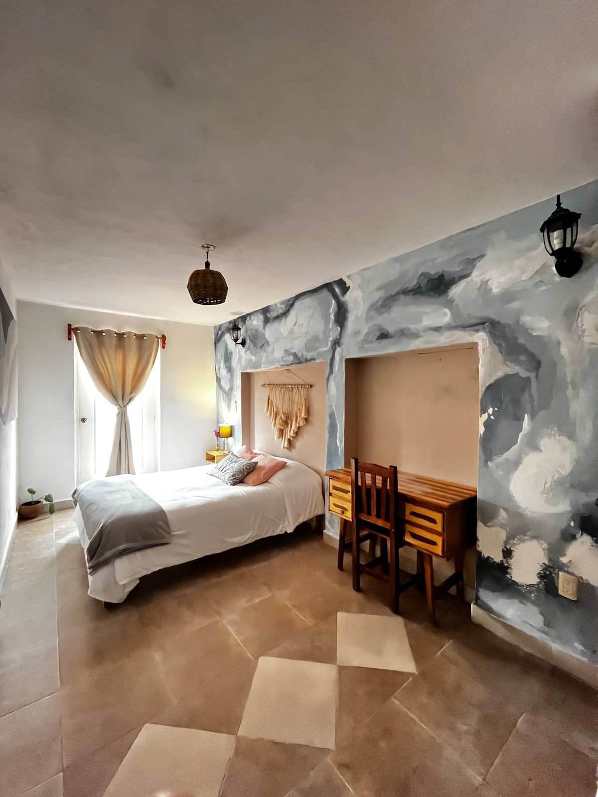 Disfruta de una experiencia excepcional con estilo en este alojamiento céntrico tipo Loft en planta alta. Ubicado en la Zona de Monumentos Históricos, a pocas calles del centro, te permitirá andar la ciudad. Con 69 m2, es independiente, con acceso propio a través de una escalera exterior de herrería, y vistas a la ciudad desde ventanas proyectables. Cuenta con cocina equipada y baño amplio, así como una cama matrimonial doble, sala de estar, comedor y amenidades para una estancia inolvidable.