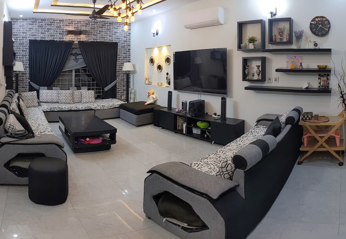 Relax in this stylish 5 Marla home! Our space combines comfort with entertainment. ✨ Highlights: Entertainment: Huge shared lounge with an 80-inch TV & Netflix. Kitchen: Modern American-style kitchen. Vibe: A cozy, neat, and clean environment. This is more than just a stay; it’s a memory-making place where you can unwind and feel at ease.