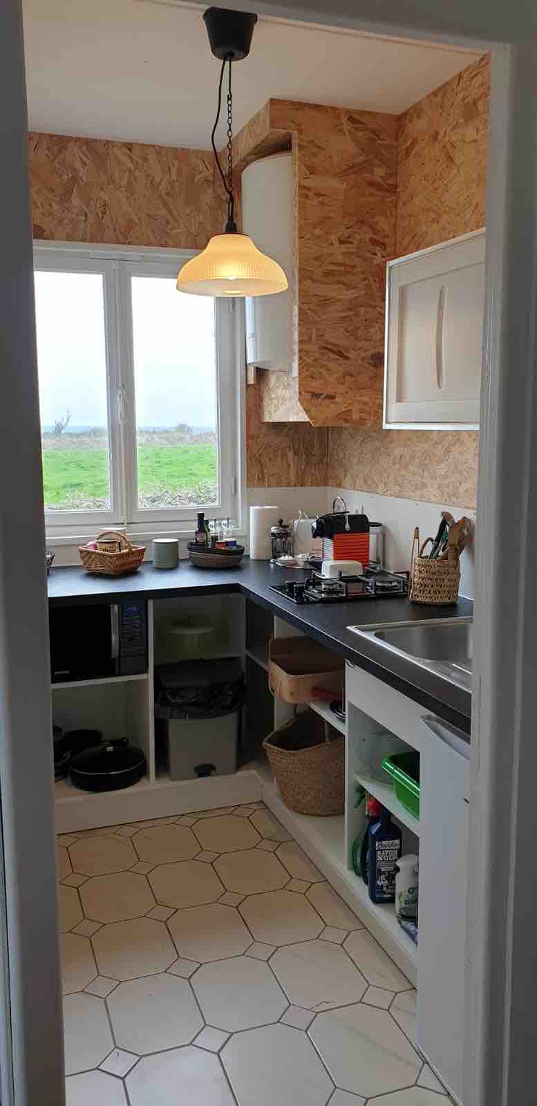 You will stay in the annexe of an old Priest's house, by the side of the church in a village between Bayeux and the Normandy War beaches, renovated by the owners, who are a French-English couple. You will probably cross their lovely dogs, Tokyo, a bearded collie Atlas and Arya, her babies born in august 2025, and their cat Sushi. If you are more than 2, look at our profile, we have also 2 other rooms for you.