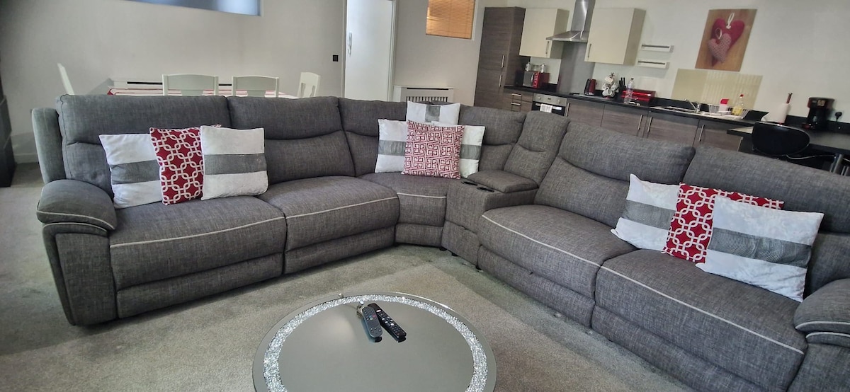 Un cómodo agujero de cerrojo con el centro de la ciudad de Ipswich a las puertas. Nuestro apartamento completamente nuevo ha sido diseñado en un hábitat moderno y relajante junto con las comodidades prácticas que permiten a los huéspedes aparecer con el mínimo de equipaje. El estacionamiento en el lugar y la proximidad a la estación de tren y la estación principal de autobuses hacen que moverse sea fácil. Relájate en un entorno cómodo, televisores inteligentes en el salón y el dormitorio y cocina totalmente equipada.