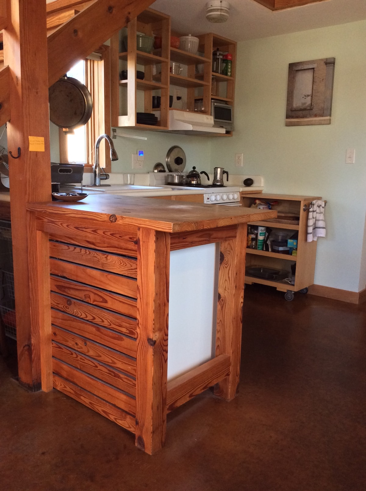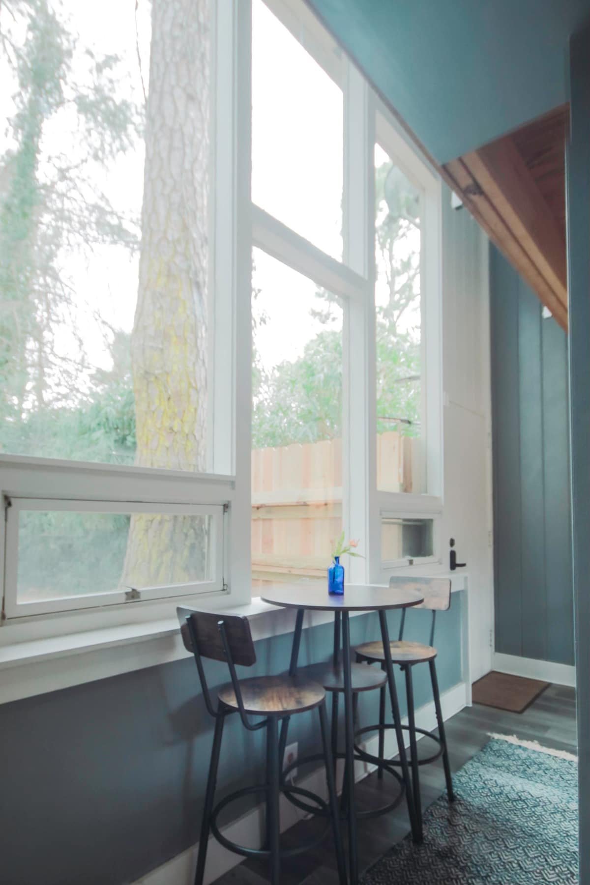 A pocos pasos de la animación del centro de Carrboro, el apartamento parece un santuario enclavado en un entorno natural. El espacio más pequeño cuidadosamente escalado y diseñado, la madera natural y la conexión con la naturaleza rejuvenecen el alma, permitiendo que uno esté presente de una manera más lenta, relajada y suave. El dormitorio loft de arriba tiene una cama tamaño queen, un escritorio y muchas ventanas que dejan entrar la luz del sol y vistas a los árboles. En la planta baja hay una pequeña sala de estar, cocina, comedor y baño.