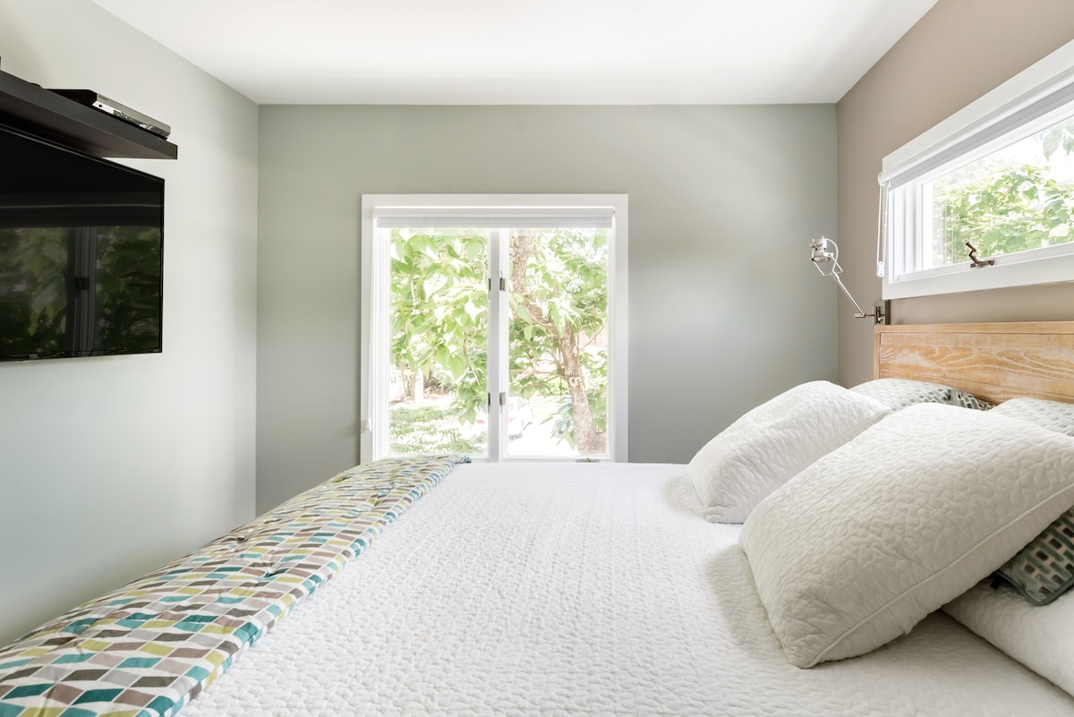 ¡Reserva esta increíble casita para una escapada romántica perfecta en el corazón de Chapel Hill! Se encuentra en un bosque privado lleno de vida silvestre, pero a solo 5 minutos a pie de Franklin Street y del campus de la UNC. Disfruta de vistas increíbles desde las ventanas del suelo al techo de zorros y ciervos jugando en el césped. Relájate en la hamaca de pared a pared mientras contemplas los árboles a través de los tragaluces. Relájate con una película en la cama reproducida en nuestro enorme proyector. ¡No hay nada como esto en ningún lugar del Triángulo!