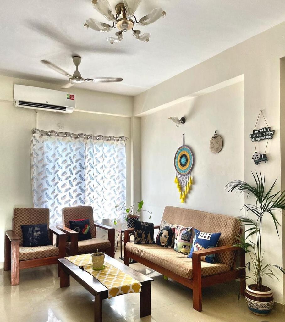Introducing Pamela Palms™ - home to tall green palms and rare tree-top views, this bright, modern 67m² 2-bedroom apartment on the 3rd floor is a 5-min drive from Anjuna beach, and is full of natural light & Goa feels! Equipped with super fast Wifi (300 Mbps) and power backup, you'll be closely connected to the coolest eateries, classy restaurants and supermarkets. A lively stay for your Goa getaways and workation with your group!