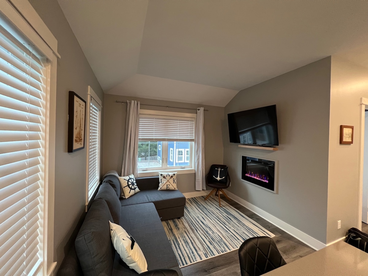 Escape to our cozy 2-bedroom, 2-bath Charlevoix townhome! Perfect for families or couples, our pad comfortably fits 4 guests. Enjoy a fully equipped kitchen, entertainment with streaming services, board games, and a private balcony. You're just 2 blocks from kid-friendly Ferry Beach and 2 miles from Castle Farms. Unwind after a day of adventure at our quiet edge-of-town location.