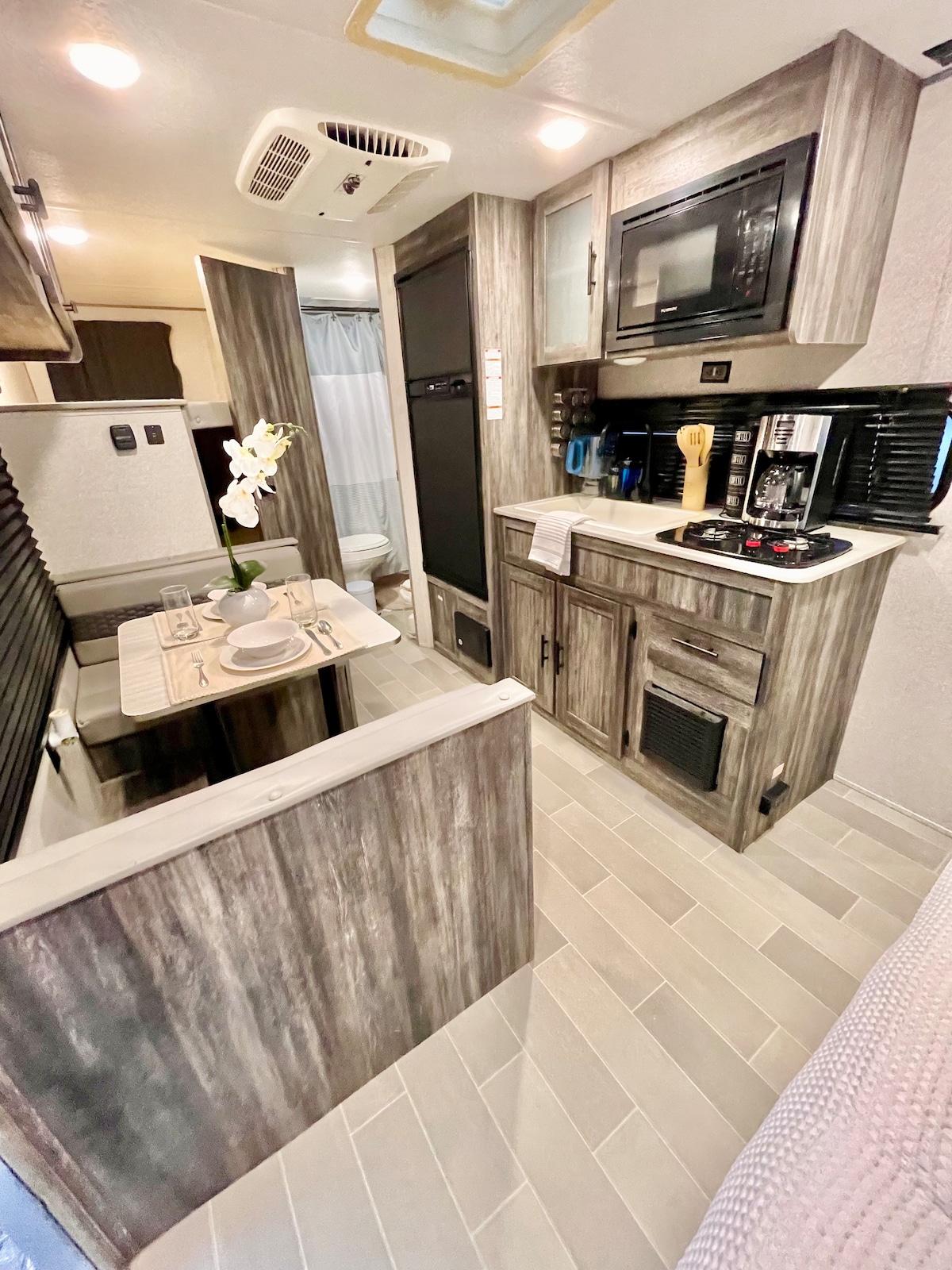 Disfruta de este emblemático Airstream Excella 34’ que se ha convertido completamente en una “experiencia de glamping” definitiva. Ofrece la icónica vida airstream, pero con características que esperarías en un hogar. Ofrece una ducha tipo casa, inodoro, cocina e incluso un combo de lavadora/secadora para que puedas tener la experiencia de glamping más única. Disfruta de total privacidad, ya que la corriente de aire está completamente vallada. Está a solo 12 minutos de Englewood Beach, a 5 minutos de tiendas y restaurantes.