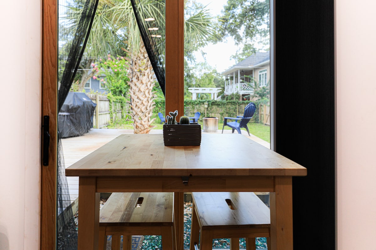 Nuestra acogedora casa de huéspedes en la isla es de 550 pies cuadrados de espacio de estudio boho. Perfecta para viajeros que están solos, en pareja o incluso familias pequeñas. ¡Tienes tu propio aparcamiento que tiene acceso directo a un GRAN patio vallado con vallas de privacidad para tu comodidad! ¡Se admiten mascotas! ¡Ubicada en la isla de Wilmington, a solo 15 minutos de las playas de la isla Tybee y del centro de Savannah!