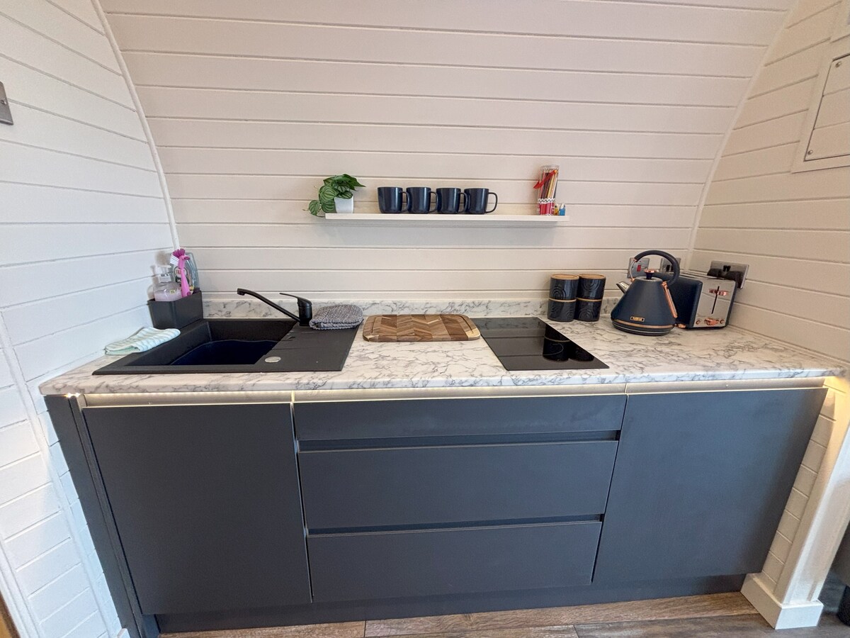 Nuestra cabaña ofrece una acogedora estancia independiente con una cocina totalmente equipada, salón, dormitorio con cama superking, ducha de lujo en suite y servicio con inodoro adicional. Esta casa ecológica tiene calefacción por suelo radiante y contiene muchos artículos reciclados, desde las tablas de andamios recuperadas del exterior hasta las muchas gemas reutilizadas que se encuentran en el interior. Al salir hay un patio privado orientado al sur y un jardín con su propio espacio de estacionamiento, todo a solo un paseo tranquilo de la ciudad.