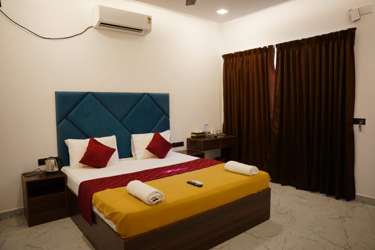 Our Deluxe Room offers a spacious and inviting retreat, perfect for those seeking a touch of luxury during their stay. With a generous 160 square feet of space, this room is designed to provide maximum comfort and relaxation. Enjoy ample room to move around and unwind , Sink into our plush beds for a restful night's sleep , Experience the convenience of modern amenities, including , flat-screen TV, Wi-Fi, Air conditioning , Room Lightings.