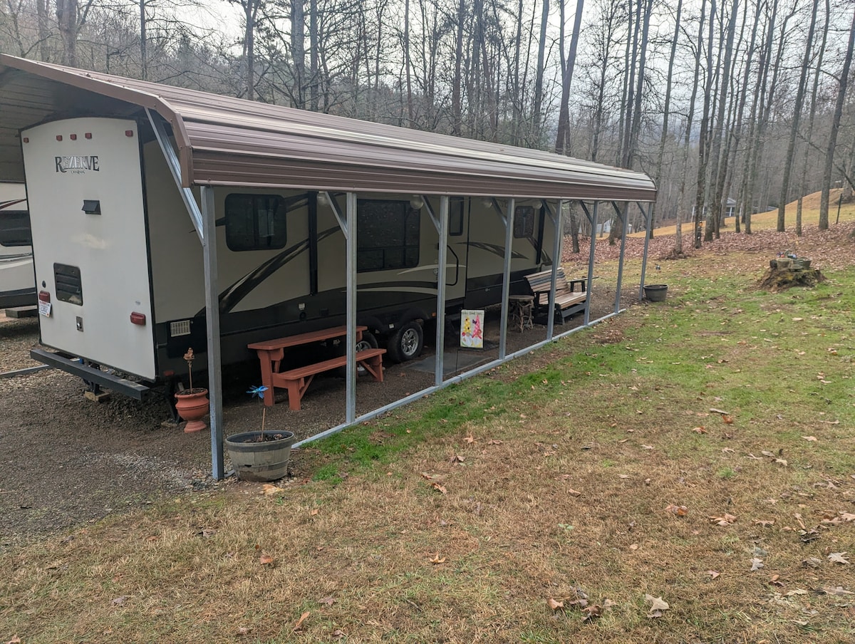 Este encantador refugio ofrece una estancia única e inolvidable para los entusiastas de la naturaleza que buscan tranquilidad y aventura. Bienvenido a nuestra caravana de 38 pies, con un dormitorio acogedor y un sofá cama para un máximo de cuatro huéspedes. Disfruta del ambiente sereno mientras te relajas en los tranquilos alrededores o reúnete junto a la hoguera junto al arroyo para disfrutar de noches llenas de relajación. Con rutas de senderismo cercanas, lagos y centros históricos, este es el campamento base perfecto para explorar las maravillas de las montañas Blue Ridge.