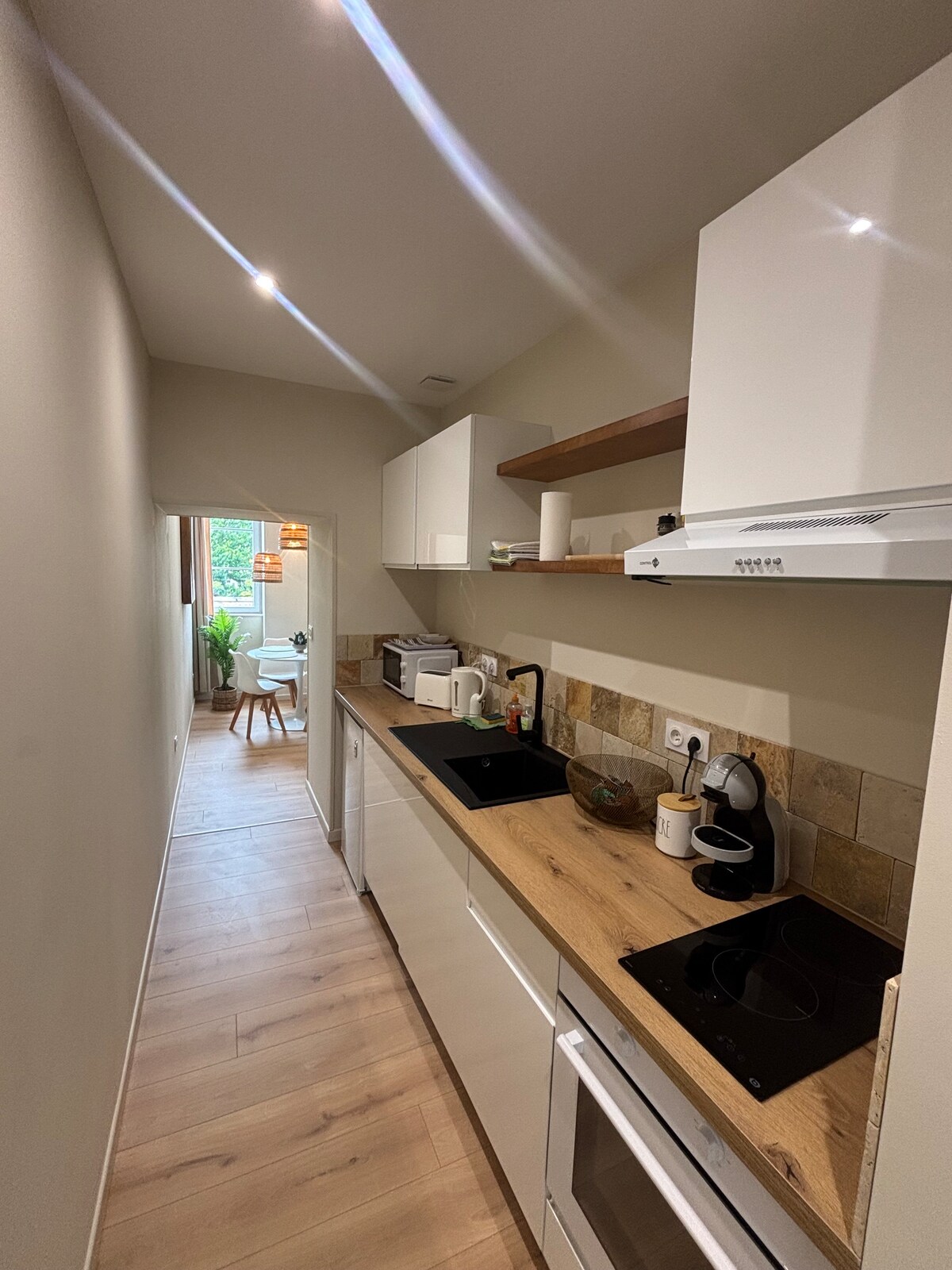 Elegante apartamento reformado en el corazón de Dole. Disfrute de una habitación acogedora, un baño propicio para la relajación y un patio interior lleno de encanto. Un entorno refinado para una escapada en pareja en el centro de la ciudad. Ya sea para una noche, un fin de semana o unos días, este alojamiento es perfecto para descubrir Dole mientras disfruta de una comodidad de alta gama. ¡Reserva ahora tu escapada en el corazón de Dole!