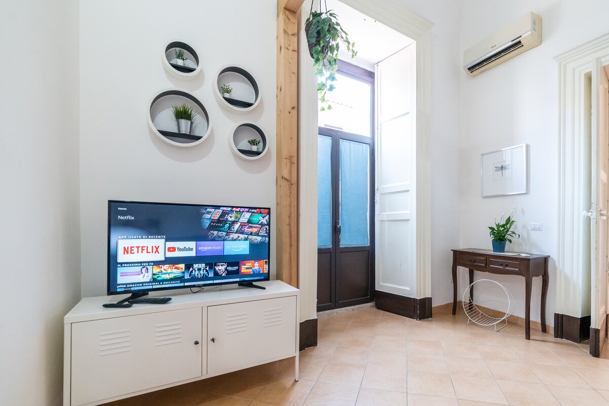 Forte Santa Barbara es un elegante apartamento de 90 m² en la primera planta con una entrada semiindependiente, en un edificio histórico renovado en el corazón de Catania. Los suelos originales, los techos abovedados, las dos terrazas y una espectacular ducha doble ofrecen encanto y comodidad. La calle es peatonal porque debajo del edificio se encuentra la evocadora Tricora romana (siglos II-IV d. C.): aquí literalmente dormirás sobre la historia de la ciudad.