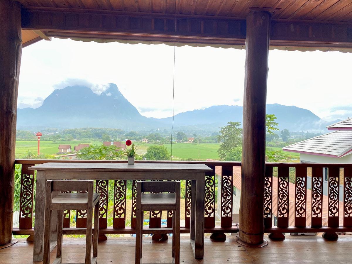 Nuestra casa de madera de teca se encuentra en una gran finca privada junto al Parque Nacional Doi Luang, a solo 1,5 km de las aguas termales, con una espectacular vista a la montaña. Rodeado de bosques de bambú y teca, ofrece un ambiente tranquilo y seguro lleno de cantos de pájaros y sonidos de la naturaleza. Aunque está inmerso en la naturaleza, está a solo 3 km del pueblo. Un lugar perfecto para relajarse, reconectar y disfrutar de la belleza natural de Chiang Dao.