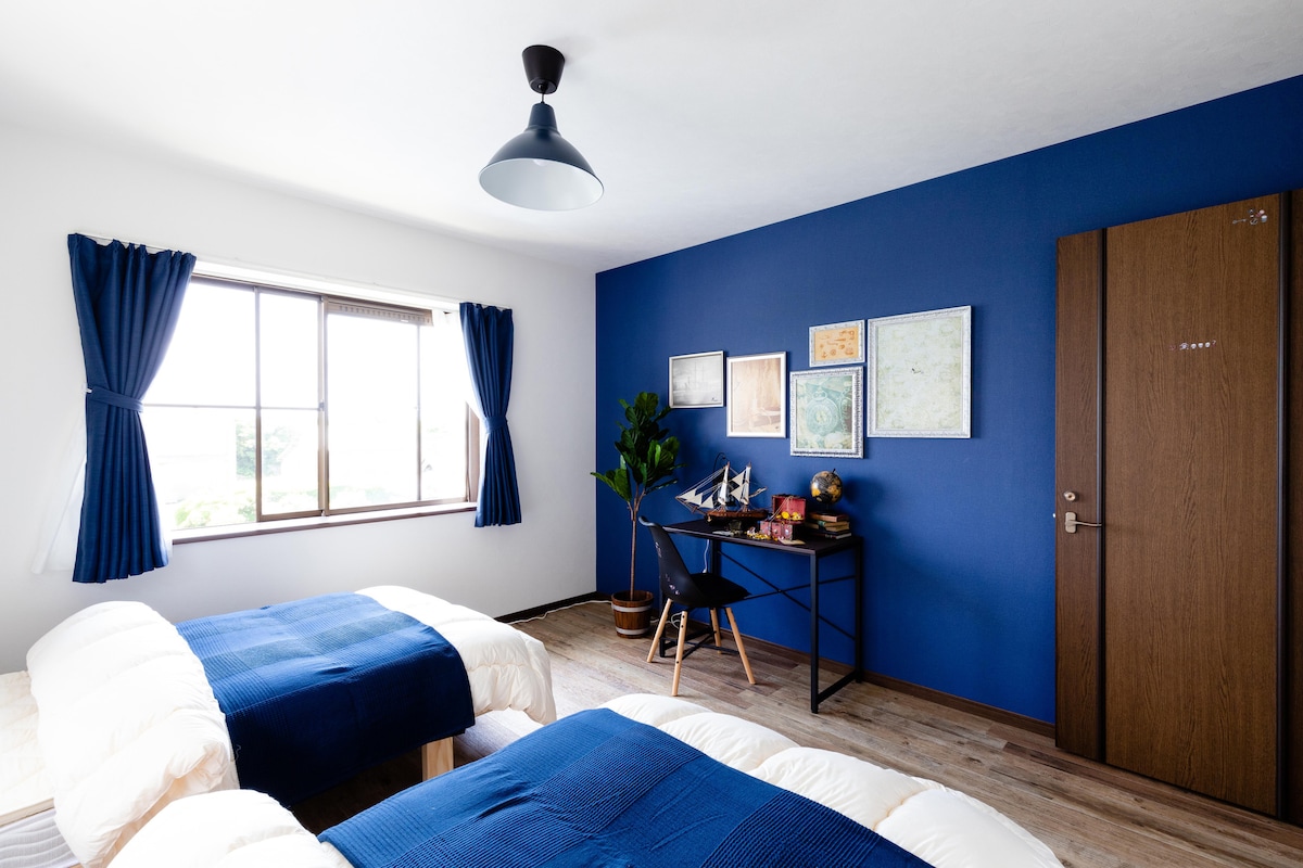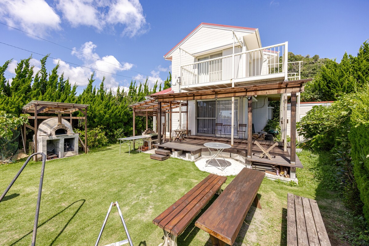 VAMOS A VER is a spacious 133㎡ private house located just a 15-minute walk from Onjuku Station and a 5-minute walk from the beach. The living room offers plenty of space to relax and features a 75-inch TV with terrestrial channels, plus access to Netflix and YouTube. We provide 2 free electric bicycles, making it easy to get around the area or travel to and from the station. On the 2nd-floor wooden deck, you can enjoy a simple BBQ—perfect for families or groups of friends. Pets are not allowed
