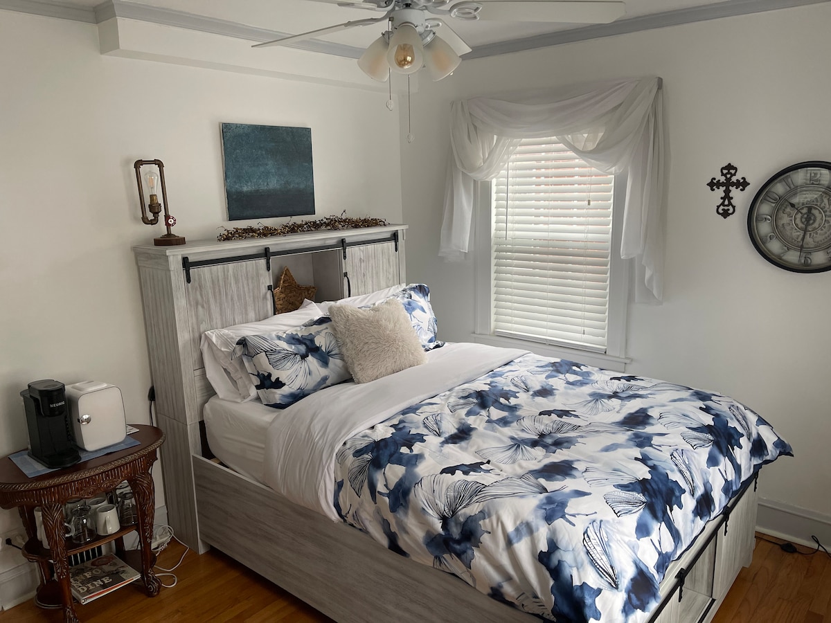 Disfruta de lujo y comodidad en este acogedor estudio frente al lago con entrada privada, adosado a una casa donde residen los amables anfitriones. El estudio ofrece una lujosa cama tamaño queen, una cocina pequeña con mininevera, microondas, placa de inducción y un baño completo. Situado en uno de los barrios más seguros de Naperville, a pocos minutos de cafeterías, restaurantes, mercados y una ruta para bicicletas, con fácil acceso a la I-88.