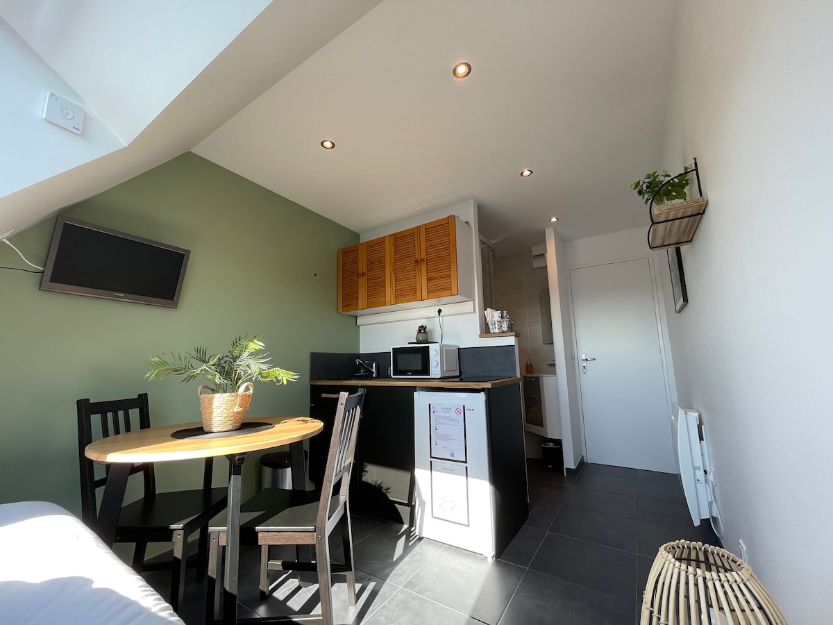 Pequeño estudio funcional con todas las comodidades para una estancia corta y larga. Está situado a 1 km de la estación de Caen en un barrio con todas las comodidades de proximidad (farmacia, panadería, carnicería, tiendas de alimentos, transporte...).