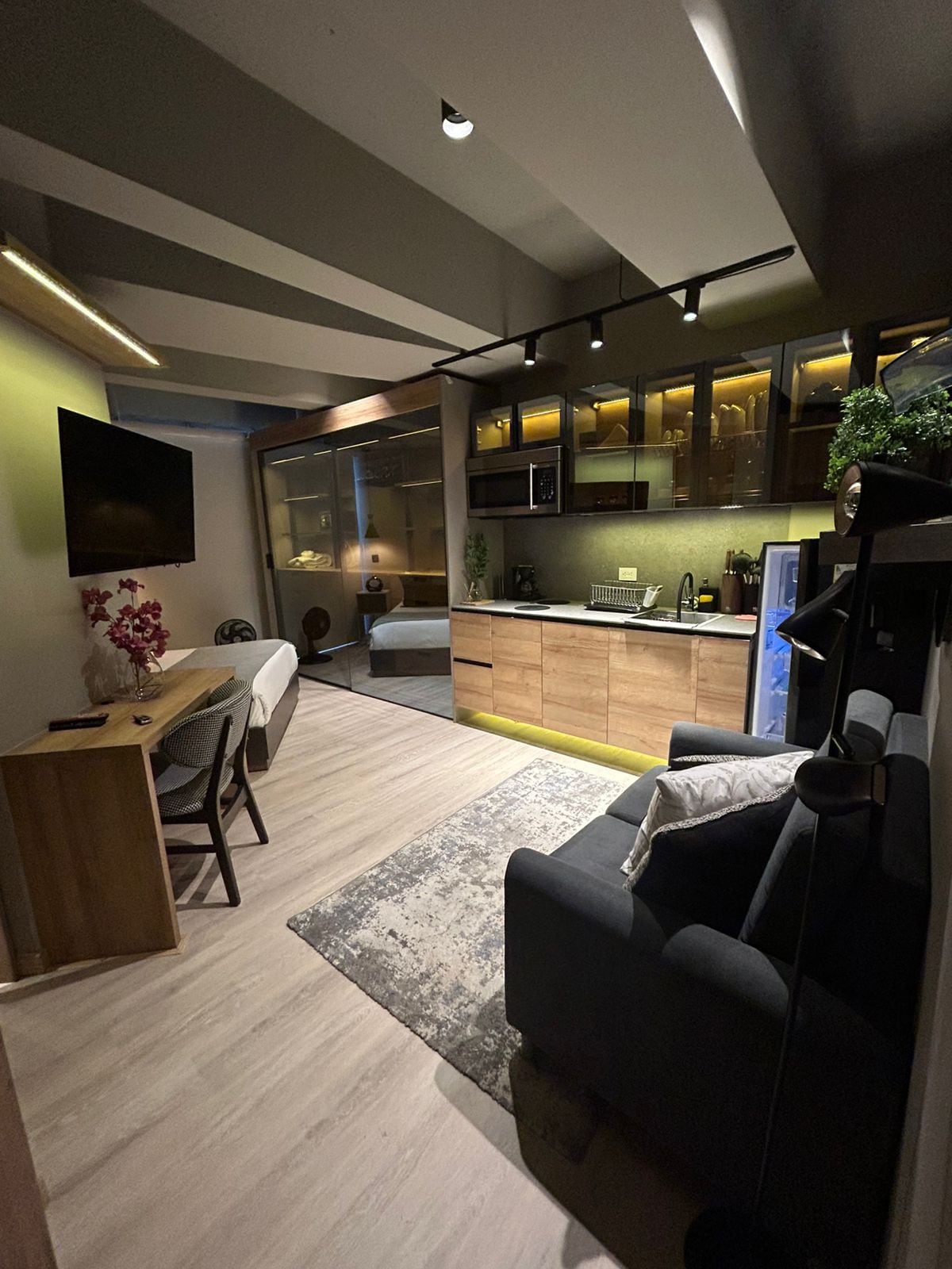 Escápate a un loft romántico y moderno en Chicó, una de las zonas más exclusivas de Bogotá. Disfruta un jacuzzi romántico y privado, cama king, Smart TV 4K y WiFi 500MB. A solo 5 min de Parque 93 y Zona T, rodeado de cafés y restaurantes. Ideal para parejas, aniversarios y viajeros que buscan comodidad premium. • Jacuzzi privado • Cama king • Cocina equipada • Estacionamiento gratis • Self check-in Perfecto para escapadas y sorpresas románticas. ¡Tu loft ideal en Bogotá te espera!