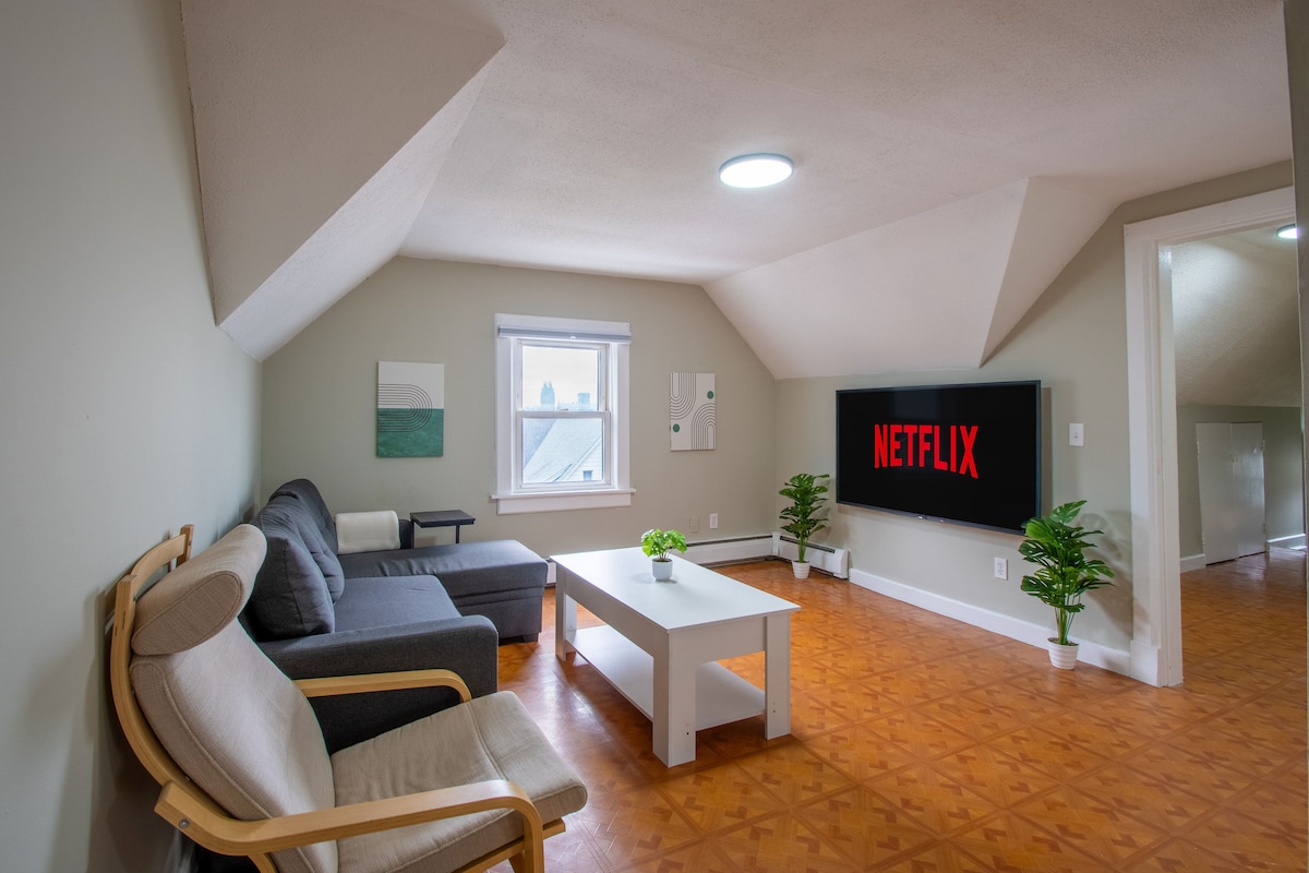 Disfruta de tu estancia en mi unidad familiar, tranquila y limpia en el segundo piso, en las hermosas tierras altas de Holyoke. Gran vecindario con grandes y hermosas casas antiguas llenas de encanto. A 3 minutos de la interestatal 91 y una tienda de comestibles. Cerca de Six Flags y de todos los colegios, Northampton y Amherst. Porche privado del segundo piso y estacionamiento en la calle directamente frente a la casa. El anfitrión vive en el alojamiento en otra unidad. El barrio es muy tranquilo y seguro con muchas comodidades cerca.